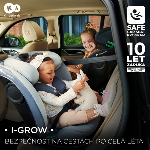 Detská autosedačka 40–150 cm I-GROW i-Size KinderkraftOtočná autosedačka I-GROW vás bude sprevádzať od narodenia dieťaťa až približne do 12 rokov (36 kg / 150 cm výšky). Okrem klasických prvkov, ako sú nastaviteľné 5-bodové vnútorné pásy a pevná škrupina, je vybavená aj množstvom dodatočných bezpečnostných systémov, ako napríklad H-GUARD a SPS+, a nechýbajú ani indikátory správneho upevnenia ISOFIX a TOP TETHER. Vďaka systému EASY SPIN 360° môžete autosedačku v priebehu chvíľky otočiť k sebe a dieťa pohodlne pripútať vnútornými pásmi.I-GROW navyše umožňuje prepravu dieťaťa v protismere jazdy (RWF) až do 4 rokov! RWF je najbezpečnejšia poloha na prepravu detí – pri čelnom náraze je až 5× bezpečnejšia. Autosedačka ochráni dieťa v každej situácii vďaka 12-stupňovému nastaveniu opierky hlavy a 5-stupňovému nastaveniu sklonu operadla. Ide o autosedačku, ktorá kladie maximálny dôraz na bezpečnosť.Od narodenia až do približne 12 rokov!Autosedačka I-GROW vás bude sprevádzať na cestách od narodenia až približne do 12 rokov (36 kg). Stačí si kúpiť jeden produkt – a ten zabezpečí dieťaťu ochranu počas celej doby používania autosedačky.Najvyššie bezpečnostné štandardyI-GROW bola navrhnutá s dôrazom na bezpečnú a pohodlnú jazdu. Umožňuje prepravu v protismere jazdy (RWF) približne do 4 rokov. RWF je najbezpečnejší spôsob prepravy malých detí a odporúča sa používať ho čo najdlhšie – pri čelnom náraze je až 5× bezpečnejší.EASY SPIN 360°Tento systém výrazne uľahčuje pripútanie dieťaťa do autosedačky. Stačí stlačiť ľahko dostupné tlačidlo a otočiť sedadlo smerom k sebe. EASY SPIN 360° zároveň umožňuje rýchlu zmenu polohy (RWF / FWF) bez nutnosti demontovať celú autosedačku.Bezpečnosť na cestáchAutosedačka I-GROW je vybavená dvomi ochrannými systémami, ktoré chránia dieťa počas jazdy:- H-GUARD SYSTEM – zosilnená opierka hlavy z pamäťovej peny, ktorá absorbuje silu nárazu.- SIDE PROTECT SYSTEM+ – rozšírené bočné chrániče, ktoré absorbujú energiu pri bočnom náraze.Jednoduchá montáž ISOFIXVďaka systému ISOFIX je montáž rýchla a jednoduchá. Pri úchytoch sa nachádzajú indikátory, ktoré ukazujú správne upevnenie. Autosedačka je vybavená aj popruhom TOP TETHER – ďalším prvkom stabilizácie pri používaní vnútorných pásov.EASY GROW SYSTEMAutosedačka rastie spolu s dieťaťom – ponúka až 12 polôh výšky opierky hlavy a 5 polôh sklonu operadla (pri RWF aj FWF). Správne nastavenie výšky podľa dieťaťa výrazne zvyšuje bezpečnosť.Pohodlie na dlhé rokyAutosedačka spĺňa aj očakávania rodičov – vnútorné 5-bodové pásy možno jednoducho skryť bez demontáže. Obsahuje aj modulárnu vložku z pamäťovej peny pre menšie deti, ktorá zvyšuje pohodlie a bezpečnosť. Poťah je odnímateľný a možno ho prať.Materiály:- základňa: PP- poťah: polyester- výplň: pena + pamäťová pena (memory foam)Rozmery:- Vnútorná dĺžka sedadla: 34 cm- Dĺžka autosedačky v ľahu: 59 cm (FWF) / 75 cm (RWF)- Vonkajšia šírka: 44 cm- Vonkajšia výška min.: 61 cm- Vonkajšia výška max.: 81 cmHmotnosť: 11 kgDôležité: Autosedačku vždy správne upevnite v súlade s návodom na použitie. Nepoužívajte autosedačku v prípade vážneho poškodenia. Dieťa by malo byť vždy správne pripútané.Adresa dodávateľa: Supl4kraft sp. z o.o. ul. Tatrzanska 1/5, 60-413 Poznan, Poland support@kinderkraft.com www.kinderkraft.com