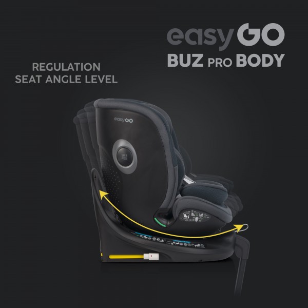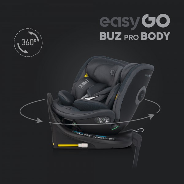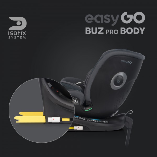 Autosedačka EasyGo BUZ PRO BODY pre deti od 40 do 150 cm I-SIZE, môže byť súčasť sady 2 v 1 s autosedačkou/vajíčkom BUZ PRO s použitím spoločnej rotačnej základne ISOFIX.
