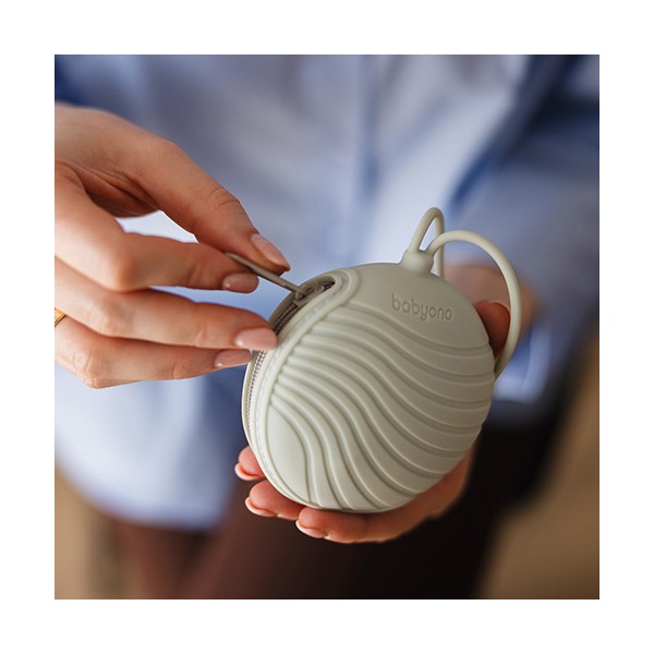 Silikónové puzdro na cumlík so zipsom – hygienické, praktické a vždy poruke. Vaše bábätko plače, vy sa ho snažíte upokojiť, no cumlík je špinavý alebo sa stratil? Zabudnite na stres! Silikónové puzdro na cumlík so zipsom na bočnej strane zabráni jeho znečisteniu, vlhnutiu a strate – či už ste doma, vonku alebo na cestách. Cumlík vášho bábätka zostane čistý a vždy pripravený na použitie. Puzdro má dostatok miesta pre dva štandardné cumlíky. Vďaka dlhému a flexibilnému pútku ho jednoducho pripevníte na tašku, batoh alebo kočík. Praktický zips umožní rýchle otvorenie a zatvorenie – jednou rukou a bez zbytočného zdržania. Vyrobené je z mäkkého, odolného silikónu bez BPA, ktorý je bezpečný, hygienický a vhodný aj do umývačky riadu.Vlastnosti:- chráni cumlík pred prachom, vlhkosťou, pieskom, baktériami a stratou – doma, vonku aj na cestách- zmestia sa doň až dva štandardné cumlíky – buďte pripravení na každú situáciu- flexibilné pútko umožňuje upevniť puzdro na tašku, kočík alebo batoh – cumlík budete mať vždy poruke- praktický zips na rýchle vloženie a vybratie cumlíka jednou rukou- univerzálne využitie – uložíte doň aj kľúče alebo drobnosti- minimalistický dizajn – hodí sa ku každému štýlu- vyrobené z netoxického silikónu bez BPA – bezpečné pre kontakt s detskými potrebami- mäkký, odolný a pružný silikón odoláva pádom, nárazom aj stláčaniu – nepraská ako plast- jednoduchá údržba – stačí utrieť, opláchnuť alebo umyť v umývačke riaduRozmer balenia: 13,5 x 4,5 x 20,5 cmDôležité: Odstráňte všetky prvky, ktoré by mohli byť pre dieťa nebezpečné. Pred každým použitím skontrolujte stav výrobku. Pri prvých známkach poškodenia alebo opotrebovania ho prestaňte používať. Vždy používajte pod dohľadom dospelej osoby – výrobok nie je hračka. Obal si uschovajte na informačné účely a uchovávajte mimo dosahu detí. Pred prvým použitím prelejte puzdro vriacou vodou (nevariť!) a osušte. Po umytí v umývačke riadu výrobok hneď vyberte a osušte – ponechanie v umývačke môže spôsobiť deformácie.Adresa dodávateľa: Babyono sp. z o.o., Kowalewicka 13, 60-002 Poznań, Poland. +48 61 83 90 520, info@babyono.pl, www.babyono.com
