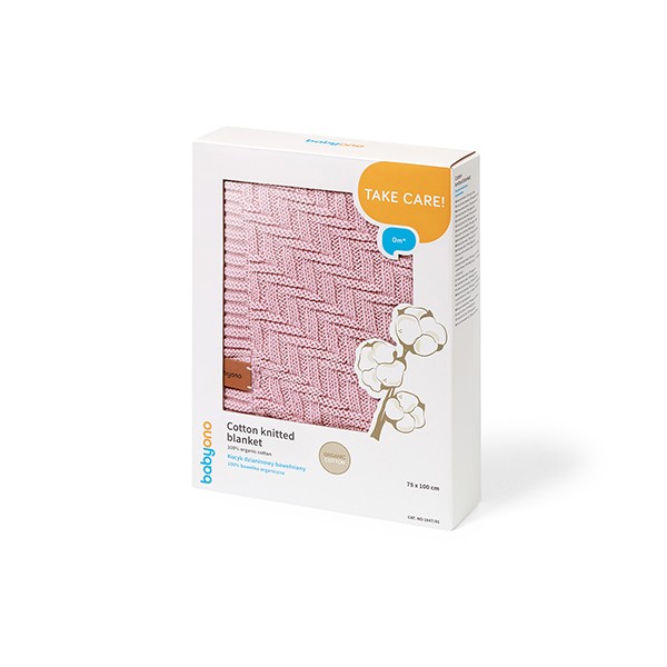 BABYONO Deka z organickej bavlny pletená 75 x 100 cm pink 0m+