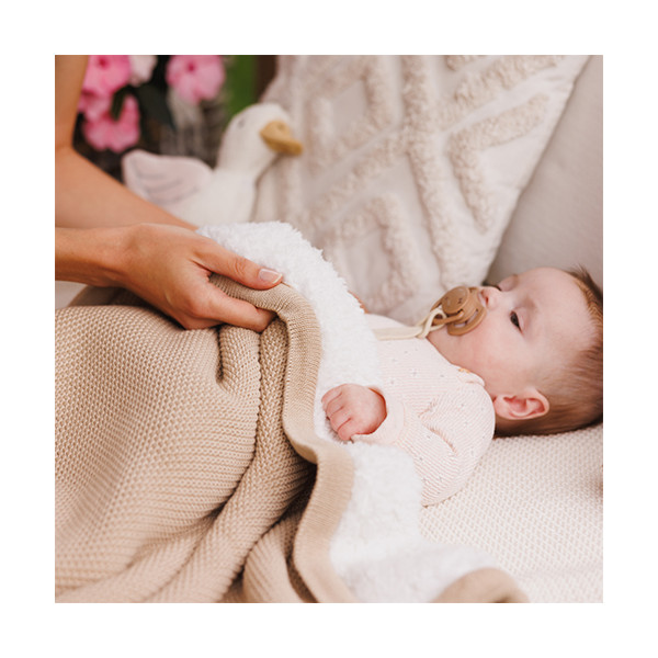 Táto dvojvrstvová deka je ideálnou voľbou pre chladnejšie dni. Vrchná vrstva je vyrobená z prírodnej bavlny – jemnej a bezpečnej pre citlivú pokožku dieťaťa. Spodná strana je podšitá hustou sherpa látkou (flísom), ktorá pripomína jahňaciu kožušinu a výborne izoluje teplo. Deka nedráždi pokožku, vytvára pocit bezpečia a pohodlia, takže vaše dieťa sa bude cítiť ako v mäkkom, teplom obláčiku. Ideálna pre novorodencov, dojčatá aj staršie deti – doma, na prechádzkach či na cestách.Vlastnosti:- Dvojvrstvová, mimoriadne hrejivá – bavlna a sherpa flís poskytujú maximálnu ochranu pred vetrom a chladom- Mäkká a príjemná na dotyk – jemne obalí dieťa a prináša pocit blízkosti a istoty už od prvých dní života- Prírodná bavlna – priedušná a šetrná k citlivej pokožke, vhodná na každodenné používanie- Sherpa podšívka – hustá, nadýchaná látka výborne drží teplo a je príjemná na dotyk- Univerzálne použitie – ideálna do postieľky, kočíka či autosedačky, na doma aj na cesty- Jednoduchá údržba – pranie v práčke pri 30 °C, zachováva si farbu aj hebkosťOdporúčaná starostlivosť:- Perte v práčke na jemnom programe (max. 30 °C)- Nepoužívajte bielidlá ani silné čistiace prostriedky- Sušte naplocho alebo v sušičke pri nízkej teplote- Odporúčame deku pred prvým použitím vypraťTechnické údaje:- Vrchný materiál: 100 % bavlna- Podšívka: 100 % polyester (sherpa)- Rozmery produktu: 75 × 100 cmDôležité: Pred každým použitím skontrolujte stav výrobku. Pri prvých známkach poškodenia alebo opotrebovania výrobok prestaňte používať. Obal si uchovajte na informačné účely a uchovávajte mimo dosahu detí.Adresa dodávateľa: Babyono sp. z o.o., Kowalewicka 13, 60-002 Poznań, Poland. +48 61 83 90 520, info@babyono.pl, www.babyono.com
