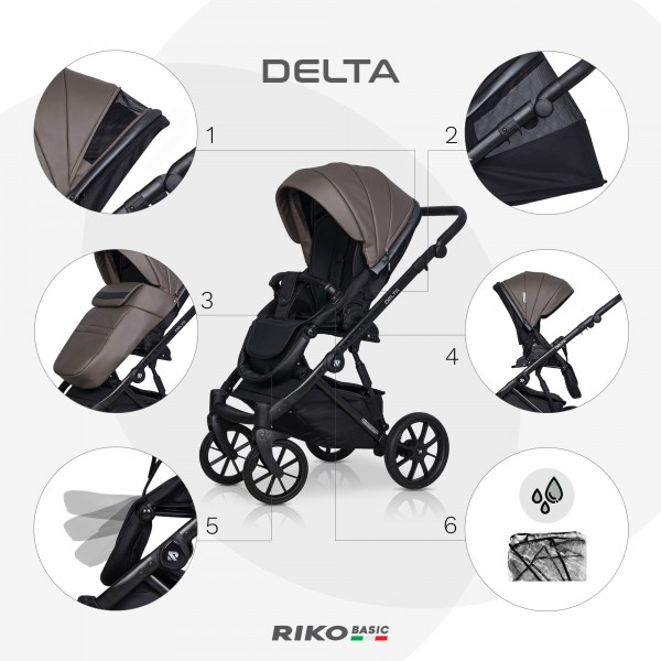 Wózek dziecięcy 2w1 lub 3w1 DELTA ECCO marki RIKO BASIC W odpowiedzi na potrzeby klientów i zmieniające się trendy zakupowe związane z rosnącą popularnością zakupów przez Internet, renomowany Polski producent wózków dziecięcych RIKO wprowadził nową podmarkę o nazwie RIKO BASIC. Jest to seria wózków dziecięcych 2w1 i 3w1 wyprodukowanych w Polsce i przeznaczonych głównie na potrzeby sprzedaży wysyłkowej e-commerce. Wózki z serii RIKO BASIC są tańsze od standardowej oferty marki RIKO dzięki zastosowaniu niższych marż hurtowych i detalicznych. W przeciwieństwie do standardowej oferty, wózki dziecięce RIKO BASIC dostępne są niemalże „od ręki”, co jest przecież tak ważne dla Państwa, gdy decydujecie się na zakup przez Internet. Regularną dostępność i szybki czas realizacji zamówień udało się uzyskać dzięki optymalizacji procesu produkcyjnego. Nie szukaj wózków RIKO BASIC w salonach sprzedaży i pamiętaj, że dokonując zakupu przez Internet masz prawo zwrotu nieużywanego wózka w terminie 14 dni bez podawania przyczyny. Zakup przez Internet jest również bezpieczniejszy ze względu na elektroniczny zapis historii zamówienia. Wózek wielofunkcyjny DELTA ECCO marki RIKO BASIC to nowoczesny wózek dziecięcy charakteryzujący się wysoką jakością wykonania oraz doskonałą amortyzacją. Zewnętrzne elementy tapicerki, niemające kontaktu z ciałem dziecka, wykonane zostały z eleganckiej i praktycznej skóry ekologicznej. Wózek DELTA ECCO wyposażony jest w 3 niezależne systemy amortyzacji, z czego 2 posiadają mechanizm umożliwiający regulację twardości. Oprócz standardowej amortyzacji kół przednich i kół tylnych wózek posiada również dodatkową amortyzację gondoli i siedziska. Posiada ona 2 ustawienia twardości: miękkie dedykowane dla gondoli, gdy Twoje dziecko jest jeszcze malutkie i waży do 9 kg oraz twardsze dla siedziska spacerowego przeznaczone dla dzieci o wadze do 22 kg. Koła w modelu DELTA ECCO posiadają lekkie elastyczne opony z poliuretanu. Poliuretan jest najlepszym tworzywem stosowanym w produkcji opon do wózków dziecięcych. Jest lekki i odporny na różnice temperatur. Dzięki bardzo dużej odporności na ścieranie opony wystarczą na okres dwukrotnie dłuższy niż opony wykonane z gumy i trzykrotnie dłuższy niż tak zwane opony piankowe. Duża gondola z tworzywa sztucznego doskonale sprawdzi się zarówno latem jak i zimą. Posiada system wentylacji oraz regulację oparcia, która doskonale sprawdzi się na przykład gdy zjeżdżasz z wzniesienia i chcesz uniknąć sytuacji, w której główka dziecka jest poniżej linii tułowia lub gdy u dziecka występuje efekt ulewania po posiłku. Wnętrze gondoli oraz materacyk wyściełane są wysokiej jakości bawełną. Materacyk wykonany jest z włókien kokosowych, które charakteryzują się właściwą twardością oraz zapobiegają rozwojowi grzybów i pleśni jednocześnie zapewniając optymalną wentylację. Siedzisko jest przekładane, więc gdy dziecko jest jeszcze malutkie i często zasypia w wózku, możesz ustawić je przodem do siebie i mieć ciągłą kontrolę nad swoim maleństwem. Gdy już trochę podrośnie i będzie bardziej ciekawe świata, obróć siedzisko przodem do kierunku jazdy. Dodatkowy komfort zapewni specjalna wkładka z miękkiej dzianiny. Na chłodne dni producent zadbał o ciepły pokrowiec na nóżki. Duży zamykany koszt na zakupy pod wózkiem i praktyczna torba zawieszana na rączce pomieszczą wszystkie niezbędne podczas spaceru drobiazgi. Nad bezpieczeństwem dziecka czuwają 5-punktowe pasy bezpieczeństwa. Wózek posiada raport z godności z normą EN 1888-1-2:2018 i przeszedł szereg dodatkowych testów wytrzymałościowych. Mimo atrakcyjnej ceny, masz pewność, że kupujesz produkt bezpieczny od renomowanego polskiego producenta. Do wózka możesz zamontować fotelik samochodowy RIKO BASIC za pomocą dołączonych do fotelika adapterów lub zakupić osobno adaptery uniwersalne do fotelików samochodowych innych marek. SPECYFIKACJA WóZKA: - tapicerka wykonana ze skóry ekologicznej (elementy zewnętrzne), - dodatkowa amortyzacja gondoli i siedziska zapewniająca maksymalny komfort, - nowoczesny wózek wielofunkcyjny z możliwością montażu fotelika samochodowego, - lekki aluminiowy stelaż, - duża wygodna gondola z bawełnianą wyściółką i regulacją oparcia, - materacyk kokosowy, - siedzisko w wersji spacerowej z możliwością montażu przodem i tyłem do kierunku jazdy, - regulacja podnóżka, - regulacja oparcia siedziska łącznie z pozycją leżącą, - regulacja budki siedziska, - pokrowiec na nóżki dziecka, - 5-punktowe pasy bezpieczeństwa, - dodatkowy materacyk na siedzisku wykonany z miękkiej dzianiny, - dodatkowy pas krokowy mocowany do barierki bezpieczeństwa, - barierka bezpieczeństwa z możliwością odchylenia na bok, - barierka obszyta praktyczną skórą ekologiczną, - prowadnica wózka obszyta praktyczną skórą ekologiczną, - regulacja wysokości prowadnicy, - duży kosz na zakupy, - łatwy dostęp do kosza na zakupy, - duży praktyczny plecak mocowany na prowadnicy wózka, - pokrowiec przeciwdeszczowy pasujący zarówno do gondoli jak i do siedziska, - moskitiera do gondoli, - innowacyjne łożyskowane koła z oponami z poliuretanu, - system regulacji twardości zawieszenia HDA (Heavy Duty Absorption), - system szybkiego demontażu przednich kół QRS (Quick Release System), - przednie koła samonastawne z możliwością blokady do jazdy prosto, - centralny hamulec postojowy. DANE TECHNICZNE: Rozłożony stelaż z kołami: 59 x 122 x 93 cm Złożony stelaż z kołami: 59 x 86 x 37 cm Zakres regulacji rączki (od ziemi): 65-112 cm Wewnętrzny wymiar gondoli: 20 x 77 x 34 cm Szerokość siedziska: 31 cm Wysokość oparcia: 49 cm Głębokość siedziska: 25 cm Długość podnóżka: 22 cm Średnica kół (przód/tył): 24 / 29 cm Waga stelaż z kołami: 9,00 kg Gondola: 5,8