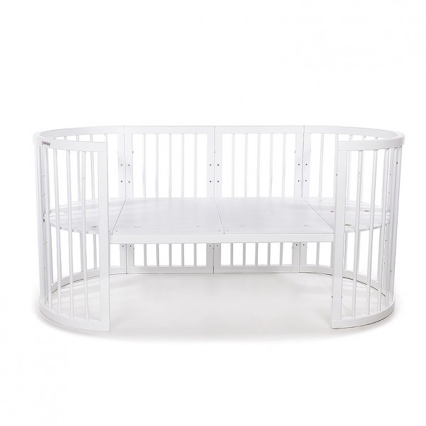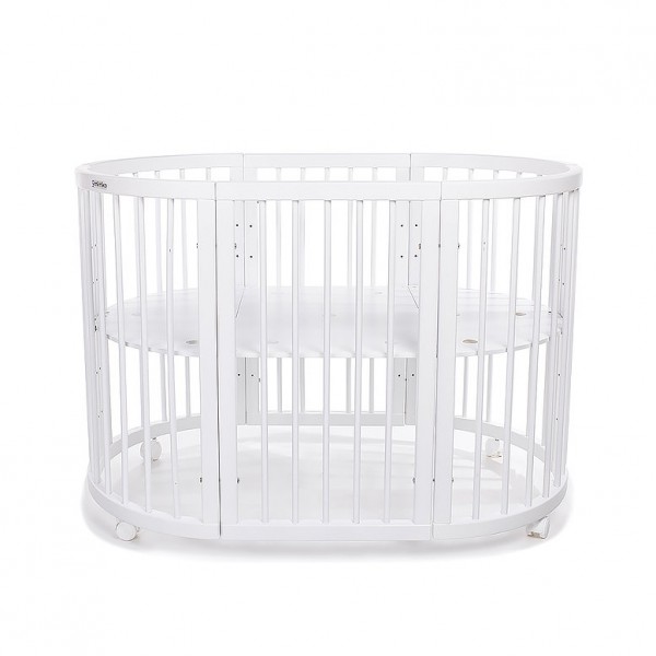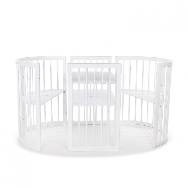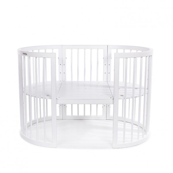 Detská postieľka-transformer Mimiko je vyrobená z masívu a vysoká kvalita zaistí postieľke dlhú životnosť. Vďaka jednoduchému a nadčasovému dizajnu sa hodí do každej domácnosti. Je praktická, bezpečná, šetrí miestom a je jednoduchá v údržbe. Rastúca postieľka ponúka varianty transformácií, ktoré dokonale vyhovujú potrebám dieťaťa rôzneho veku. 1 - okrúhla postieľka / kolíska 77 x 77 cm (vnútorné rozmery 72 x 72 cm), výška postieľky bez koliesok 80 cm, na kolieskach / na hojdacích lištách 84 cm2 - pultík s dvoma poličkami, vhodný pre úschovu detských vecí, o rozmeroch 53 x 77 cm (vnútorné rozmery 48 x 72 cm)3 - oválna postieľka 77 x 125 cm (vnútorné rozmery 72 x 120 cm), výška postieľky bez koliesok 80 cm, na kolieskach / na hojdacích lištách 84 cm4 - hracia ohrádka 77 x 125 cm (vnútorné rozmery 72 x 120 cm)5 - detská pohovka 77 x 125 cm (vnútorné rozmery 72 x 120 cm)6 - pohovka väčší variant 77 x 173 cm (vnútorné rozmery 72 x 168 cm)7 - 2 stoličky 38 x 77 cm s detským stolíkom 53 x 77 cm Ďalšie vlastnosti:- súčasťou balenia sú plastové kolieska v čiernej farbe s brzdou a hojdacie lišty, ktoré umožňujú mierne kolísanie- vzdialenosť medzi tyčami je 5 cm, čo vylučuje možnosť náhodného zaseknutia končatín dieťaťa- 4 výškové polohy roštu postieľky: 14 cm, 34 cm, 50cm a 66 cm od zeme