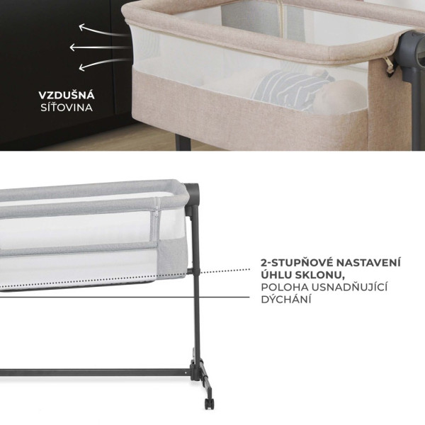Toto je záchranca pre každého rodiča novorodenca - NESTEE UP 2 je viac ako len prístavná postieľka. Je to aj samostatná detská postieľka, ktorá v prípade potreby nahradí vašu cestovnú postieľku. NESTEE UP 2 je určená pre rodičov, ktorí chcú mať svoje dieťatko blízko seba, a zároveň chcú zabezpečiť pohodlie a kvalitu jeho spánku. NESTEE UP 2 môžete jednoducho premeniť z prístelky na samostatnú detskú postieľku a naopak.Táto multifunkčná prístavná postieľka má až 5 výškových úrovní, takže ju môžete ľahko prispôsobiť výške vašej postele. Umožňuje tiež nastaviť uhol matraca na jednu z dvoch úrovní - pohodlná možnosť pre deti, ktoré často grckajú alebo sú choré a majú nádchu. Sieťka okolo celej postieľky vám umožní diskrétne sledovať, čo vaše dieťa v danom okamihu robí, a vďaka 4 kolieskam môžete postieľku NESTEE UP 2 ľahko premiestňovať z miesta na miesto. Okrem toho sa postieľka dodáva s matracom, ktorý má správnu hrúbku a hustotu odporúčanú pre bábätká - zabezpečuje správnu polohu tela vášho dieťaťa počas spánku a má pozitívny vplyv na jeho vývoj a zároveň je odolný voči plesniam a roztočom.Detská postieľka 2 v 1: detská postieľka a prístelkaNESTEE UP 2 je multifunkčná postieľka, ktorá slúži ako samostatná detská postieľka aj ako prístelka k posteli rodičov. Vďaka štyrom kolieskam s brzdou možno postieľku ľahko premiestňovať po celom dome, čo umožňuje rodičom neustály dohľad a blízkosť svojho dieťaťa. Toto riešenie poskytuje pohodlie, bezpečnosť a flexibilitu, ktorá umožňuje jednoduché prispôsobenie rôznym situáciám, od spánku v noci po boku rodičov až po zdriemnutie počas dňa kdekoľvek v dome.Ideálne prispôsobeniePlynulé a jednoduché nastavenie výšky postieľky umožňuje bez námahy prispôsobiť prístelku výške postele rodiča. Nastavte ju na jednu z 5 úrovní, nastavte nohy v takej vzdialenosti, aby postieľka presne priliehala k posteli, a pripevnite ju pomocou špeciálnych popruhov, aby ste vytvorili bezpečný priestor na spanie pre vaše dieťa. Poskytnete priestor sebe a zaistíte hygienu spánku, ale zároveň budete mať svoje dieťa na dosah ruky.Pohodlný matrac v ceneSada sa dodáva s polotvrdým matracom, ktorý odporúčajú fyzioterapeuti, pretože vďaka nemu vaše dieťa lepšie spí, má pozitívny vplyv na vývoj počas spánku, pretože poskytuje správnu oporu chrbtici a hlave. Vďaka špeciálnej výplni v podobe zlisovaných vlákien je matrac odolný voči vlhkosti, plesniam a roztočom. Matrac sa dodáva s prestieradlom, ktoré môžete prať v práčke.2-polohové nastavenie uhla sklonuUhol sklonu matraca možno nastaviť v dvoch rôznych polohách. Ak je vaše dieťatko prechladnuté alebo má problém s grckaním a vy mu chcete uľahčiť dýchanie v noci, jednoducho nastavte hornú časť matraca o niečo vyššie.Dieťa vždy na očiachSieťka, ktorá obklopuje postieľku zo všetkých strán, nielenže zabezpečuje lepšie prúdenie vzduchu pre vaše dieťatko, ale zároveň vám umožňuje nenápadne sledovať situáciu, keď sa venujete svojim každodenným činnostiam.Univerzálna a štýlováDetská postieľka NESTEE UP 2 sa vyznačuje látkou príjemnou na dotyk, ktorá sa ľahko perie. Bola navrhnutá tak, aby sa dokonale hodila do každého interiéru - perfektne zapadne do každej miestnosti. Módne farby sa budú hodiť do väčšiny interiérov v rôznych štýloch.Technické parametry:- Materiál:- poťah: ľahko umývateľný polyester- rám: pevná oceľ- pre vek: od narodenia, kým dieťa nezačne samo sedieťPOZOR! Prestante používat postelku, ked sa dieta môže posadit, vytiahnut alebo postavit na ruky a kolená. Nepoužívajte tento výrobok bez predchádzajúceho cítania návodu.Adresa dodávateľa: Supl4kraft sp. z o.o.ul. Tatrzanska 1/5,60-413 Poznan, Polandsupport@kinderkraft.comwww.kinderkraft.com