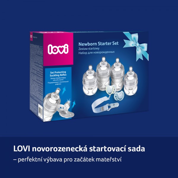 LOVI Novorodenecká štartovacia sada je skvelý darček pre budúcu mamičku alebo časť výbavy pre bábätko. Obsahuje všetky potrebné produkty na začiatok. Cumlíky a savičky LOVI sú vyrobené z heterogénnych silikónových vrstiev. Rozťahujú sa rovnako ako matkinho bradavka podľa rytmu sania dieťaťa. Vďaka nej je fľaša LOVI Medical+ s dynamickou savičkou bezpečná pre dojčené deti, pretože nenarúša sací reflex. Dynamický cumlík 0–2m bude dokonalý pre novorodencov a dojčatá v prvých týždňoch života a vďaka stužke na cumlík bude vždy po ruke.Súprava obsahuje:- 2 ks LOVI Medical+ fľaša 150 ml- 2 ks LOVI Medical+ fľaša 250 ml- 2 ks LOVI Dynamickú cumlík na fľašku 0m+ (na fľaši)- 2 ks LOVI Dynamickú cumlík na fľašku 3m+ (na fľaši)- 2 ks LOVI Silikónový dynamický cumlík 0-2m Baby Shower dievča (1 balenie)- LOVI Stužka na cumlík s klipom Baby ShowerDynamická špička cumlíka - Špička je vyrobená z tenkej vrstvy silikónu a dynamicky sa prispôsobuje saniu bábätka (predlžuje sa). Povzbudzuje svaly čeľustí k aktívnej činnosti. Mlieko nevyteká, dieťa ho musí aktívne sať.Pevná základňa cumlíka - Pevná základňa zo silnejšieho silikónu umožňuje stabilnú oporu pre správne umiestnenie pier na cumlíku.Systém odvzdušňovania SUPER air vent Anti-colic - Nový, efektívny odvzdušňovací systém SUPER VENT zabraňuje zmiešaniu mlieka so vzduchom. Týmto spôsobom sa zníži riziko koliky. Profilovaný tvar fľaše - Uľahčuje správne držanie fľaše a podávanie pokrmu.Stužka na cumlík s klipom - cumlík bude vždy po ruke.