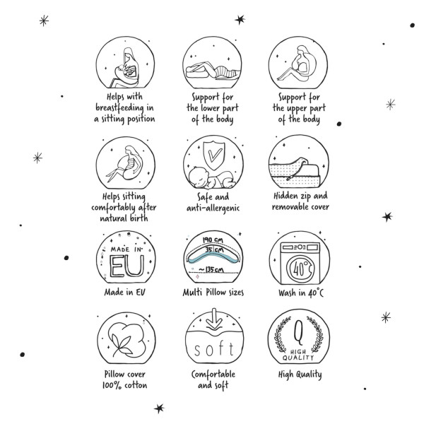 Cebuška Multi – multifunkčný vankúš pre tehotné ženy, mladých rodičov a deti. Veľký, pohodlný vankúš doprajúci relaxáciu výrazne zlepšuje komfort budúcej mamičky a neskôr aj bábätka.Cebuška je jedinečný vankúš vyplnený polystyrénovými mikroperličkami s priemerom 0,5 – 1,5 mm, teda drobnými guľôčkami, ktoré sa pri zmene polohy tela presúvajú, jemne masírujú, starajú sa o chrbticu a pohodlie nastávajúcich mamičiek. Cebuška Multi pomáha počas oddychu. Keď je bábätko už na svete, uľahčuje kŕmenie, uľavuje chrbtu a umožňuje zaujať pohodlnú polohu pri dojčení.Rozmery: d./v. 190 × 35 cm. Je certifikovaný podľa Oeko-Tex Standard 100.Technické parametre:- rozmery: 190 × 35 cm- materiál: poťah: 100 % jersey, výplň: EPS mikroperličkyVarovanie:1. Nezanechávajte dieťa bez dozoru: nikdy nezanechávajte dieťa bez dozoru na vankúši. Vankúš je určený na podporu dojčenia, ale nemal by byť použitý ako miesto na zanechanie dieťaťa bez dozoru. Dieťa sa môže náhodne prevrátiť alebo zmeniť polohu, čo môže viesť k uduseniu alebo pádu.2. Prestaňte používať v prípade poškodenia: ak vankúš vykazuje známky poškodenia, ako sú trhliny v materiáli, praskliny alebo iné štrukturálne vady, okamžite prestante vankúš používať. Trhlina môže spôsobiť únik výplne, čo predstavuje bezpečnostné riziko pre dieťa aj matku.3. Nepoužívajte vankúš ako náhradu za postieľku alebo autosedačku: vankúš nie je určený na spanie dieťaťa ani na prepravu. Nikdy nepokladajte dieťa na vankúš na noc ani ho nepoužívajte v autosedačke. Dieťa vždy umiestnite na bezpečné miesto, ako je postieľka alebo autosedačka, v súlade s odporúčaniami výrobcu.4. Bezpečné používanie počas dojčenia: uistite sa, že vankúš je správne umiestnený, aby poskytol pohodlie a podporu matke aj dieťaťu. Nesprávne umiestnenie vankúša môže viesť k nesprávnej pozícii počas dojčenia, čo môže spôsobiť bolesť chrbta alebo problémy s dojčením. Vždy dojčite dieťa na bezpečnom a stabilnom mieste, aby ste sa vyhli riziku náhodného pádu.5. Vyhnite sa nadmernému zaťaženiu vankúša: používajte vankúš podľa jeho určenia. Nadmerné zaťaženie vankúša, napríklad umiestnenie iných predmetov naň, môže poškodiť vankúš a znížiť jeho účinnosť.6. Správna starostlivosť o produkt: vankúš pravidelne čistí v súlade s pokynmi. Pred opätovným použitím sa uistite, že vankúš je úplne suchý.Dôležité: Pred každým použitím vždy skontrolujte stav vankúša, aby ste zaistili maximálnu bezpečnosť a pohodlie pre vás a vaše dieťa.Adresa výrobcu: Ceba sp. z o. o. Fabryczna 1. 56-400 Olesnica, Poland. Email support@ceba.com.pl