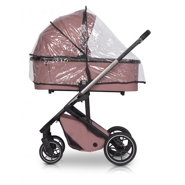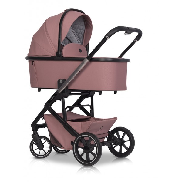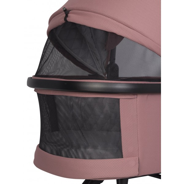 Gondola do wózka dziecięcego Cavoe Moi+ Desert Rose Gondola do wózka dziecięcego MOI+ również otrzymała dodatkową funkcjonalność dzięki zastosowaniu przycisków z pamięcią (funkcja Memory Buttons). Funkcja ta pozwala zdemontować gondolę przy użyciu jednej ręki. Po prostu wciśnij przyciski po obu stronach gondoli i unieś ją do góry trzymając za wygodny uchwyt w budce. Gondola wózka MOI+ jest duża i wygodna. Jej wewnętrzna długość to 78 cm, więc z pewnością wystarczy do czasu jak dziecko przesiądzie się do siedziska. Gondola jest bardzo lekka i zgrabna. Można ją złożyć na płasko na czas transportu lub przechowywania. W przedniej części gondoli znajduje się duży zamykany panel wentylacyjny, który w połączeniu z wentylatorem w budce, doskonale sprawdzi się ciepłe letnie dni. Gondola posiada plastikowe stopki, dzięki czemu nie ubrudzi się po postawieniu na ziemi. Funkcja Memory Buttons (przyciski z pamięcią) umożliwia wygodny demontaż za pomocą jednej ręki. WYMIARY [cm] Wnętrze gondoli (długość x szerokość x wysokość): 78 x 31 x 20 WAGA [kg] Gondola: 4,2