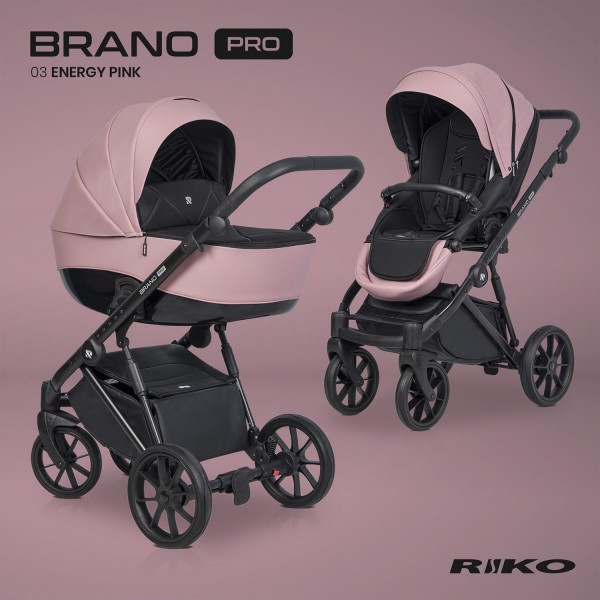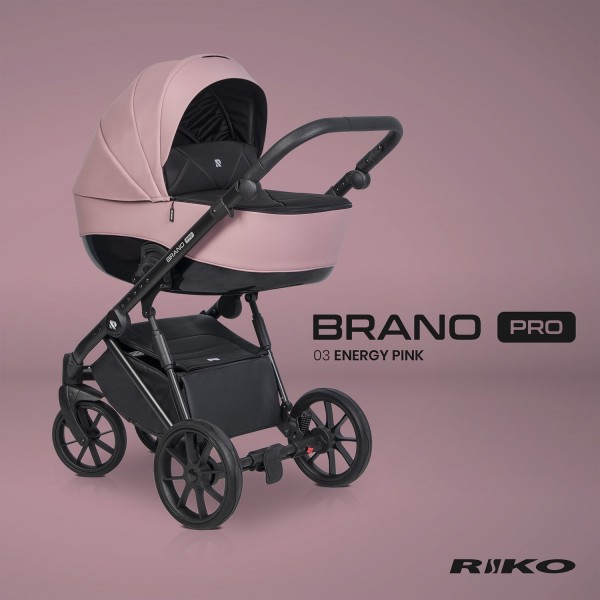 Riko Brano Pro je multifunkčný kočík, ktorý obsahuje konštrukciu, vaničku, športovú sedačku. Je to kočík 2 v 1. Okrem toho je možné dokúpiť autosedačku Cosmo 0+/ od 40-87 cm, certifikácia ECE R129 I-SIZE /, dokupuje sa v cene 102€ a vytvoriť si kočík 3v1 alebo pomocou vhodných adaptérov sa môžu pripevniť aj autosedačky iných značiek * (* o podrobný zoznam požiadajte predajcu).