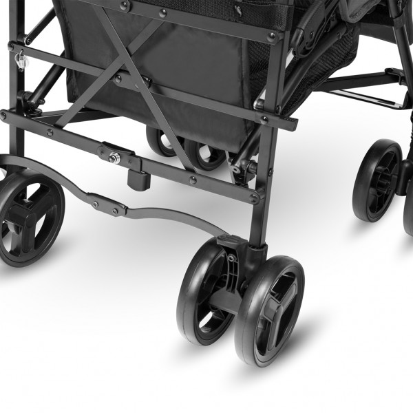 Lionelo Elia je kompaktný a ľahký športový kočík typu „dáždnik“ – ideálny na cestovanie alebo na nákupy. Osvedčia sa pri prechádzkach s dieťaťom, ktoré už vedia chodiť, ale občas si potrebuje oddýchnuť od samostatnej chôdze.Pohodlný na prenášanie a prepravu, skladá sa do kompaktných rozmerov a zaberie málo miesta. Je vhodný do lietadla alebo na uloženie do kufra, aby bol vždy po ruke. Operadlo a opierku nôh môžete nastavovať tak, aby sa dieťa cítilo čo najpohodlnejšie. Dieťa zaisťujú 5bodové bezpečnostné pásy. Elia je praktický kočík pripravený na špeciálne úlohy.Čím sa odlišuje?- Od 6 do asi 36 mesiacov (asi 15 kg)- Ľahký a kompaktný – „dáždnik“- Ideálne pre cestovanie- Kolesá odolné proti prepichnutiu- Jednoduché skladaniePrečo si ho obľúbia rodičia?- Je vždy po ruke! V kufri auta, batožinovom priestore lietadla, pri neočakávaných situáciách... Je to ľahký a skladací kočík, ktorý splní svoju úlohu, keď ho potrebujete.- Zaisťuje pokoj pri cestovaní. Je ideálnou voľbou pre dlhšie cestovanie s dieťaťom - napr. lietadlom – keď je dôležitá obratnosť a rýchlosť ovládania.Strieška XXL so strieškou a okienkom: Zväčšená strieška lepšie chráni dieťa proti atmosférickým podmienkam a poskytuje príjemný tieň. Cez okienko, ktoré umožňuje nastaviť prúdenie vzduchu, môžu rodičia pozorovať dieťa.Ľahký a kompaktný: Vďaka nízkej hmotnosti a kompaktným rozmerom môže byť kočík v rozloženom stave vždy po ruke, keď je potreba.Bezúdržbové, neprepichnuteľné kolesá: Pri ceste na dovolenku alebo pri každodenných prechádzkach nemusíte mať obavy z fúkania bicyklov alebo ich prípadného prepichnutia! Pretože kolesá z EVA peny nemožno prepichnúť.Odpruženie a aretácia otáčania: Predné kolesá sú vybavené odpružením a aretáciou otáčania, ktorá uľahčuje pokojné hojdanie v priamom smere.Jednoduchý skladací systém: Stačí chvíľka pre zloženie alebo rozloženie kočíka. Obsluha je veľmi jednoduchá a nezaberie veľa času.Pohodlné držadlo na prenášanie: Po bleskovom zložení môžete ľahký kočík ľahko preniesť pomocou ergonomického držadla.Nastavenie operadla a opierky nôh: 4 stupne nastavenia operadla a 2 úrovne nastavenia opierky nôh umožňujú prispôsobiť kočík aktuálnym potrebám a výške dieťaťa.Priestranný kôš: Do ľahko prístupného, otvoreného koša sa zmestí nákup alebo najpotrebnejšie doplnky (vrátane moskytiéry v sade)Technické parametre:- Rozmery rozloženého kočíka: 72 d x 102 v x 49 š (cm)- rozmery zloženého kočíka: 106 v x 27 š x 44 d(cm)- hmotnosť: 6 kg