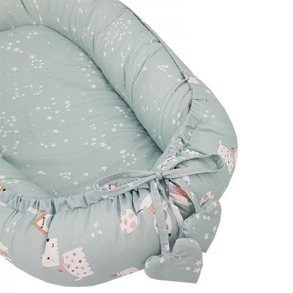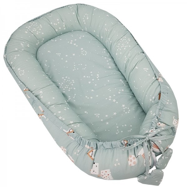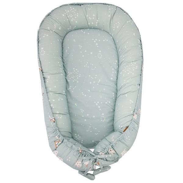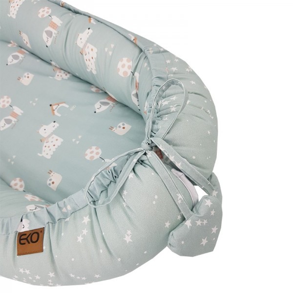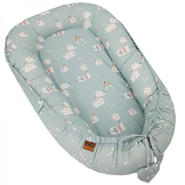 EKO Hniezdo pre bábätko obojstranné bavlnené Dogs Stars Mint 90x60 cm