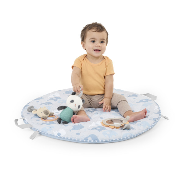 Doprajte svojmu bábätku maximálne pohodlie a podporu pri hraní s jedinečnou hracou dekou od Ingenuity – bestsellerom, ktorý rastie s vaším dieťatkom od narodenia až do 36 mesiacov. Táto luxusná, extra mäkká deka s obojstranným dizajnom ponúka 3 možnosti hrania: ležanie, hranie na brušku a sedenie. Oceníte nielen štýlový dizajn v neutrálnych farbách, ktoré sú vhodné do každého interiéru, ale aj praktickosť – drevená hrazdička SlimFold sa jednoducho sklopí a deka sa dá zložiť ako taška vďaka vstavaným rukovätiam. Vytvorte svojmu bábätku bezpečný a štýlový priestor na rozvoj motoriky, zmyslov a objavovanie sveta už od prvých dní života. Perfektný darček na baby shower alebo praktický pomocník do každej domácnosti s bábätkom.Vlastnosti:- 3 režimy hrania – ideálna pre ležanie, hru na brušku aj sedenie - Luxusná obojstranná podložka – dve vkusné, neutrálne potlače pre každý štýl domácnosti- Patentovaný ultra mäkký povrch – pripomína obláčik, poskytuje maximálne pohodlie- Ekologické a bezpečné materiály – hrazdička z dreva a hračky z prírodných materiálov- Jednoduché skladanie a prenos – sklopná hrazdička + vstavané rukoväte- 5 odnímateľných hračiek: silikónový lístok, plyšová panda, drevený krúžok, zrkadielko s levíkom a hrkálka so žirafou- Údržba bez starostí – deka a poťah sú prateľné v práčke, hračky a hrazdička sa dajú utrieť.Materiál: – 70% látka, 20% drevo a 10% plast.Vekové rozpätie: 0 - 36 mesiacovRozmery produktu: 49 cm x 82 cm x 82 cm Dôležité: Pred odovzdaním výrobku dieťaťu odstráňte všetok obal a upevňovacie prvky. Tento obal a návod na použitie si uschovajte pre budúce použitie – obsahujú dôležité informácie. V rámci neustáleho procesu zlepšovania a inovácie naše výrobky priebežne aktualizujeme.Adresa dodávateľa: KIDS2 EUROPE BV 5 Keizersgracht 287, 1016 ED Amsterdam, Netherlands; +31 20 241 0934.