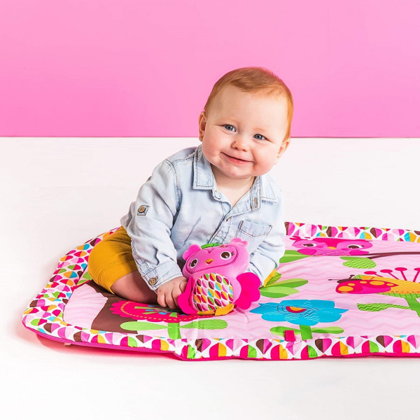 Veľká hudobná deka s hrazdičkou a hračkami očarí dieťatko a láka ho skúmať a dotýkať sa okolitého sveta. Deka Charming Chirps™ stvorená pre čas plný zábavy pre malé princezné.Detailné informácie:- Vhodná pre deti už od narodenia- Hrazdička s rozkošnou plyšovou hudobnou sovičkou so 4 melódiami- Veľké bezpečnostné zrkadielko vzbudzuje záujem dieťatka o sebaobjavovanie- Hrkálka v tvare lienky s korálkami- Hryzátko v tvare kvetinky- Hrkálku v tvare srdiečka- Hudobná hračka sovička obsahuje batérie, ktoré nie je možné vymeniť- Hrazdička obsahuje 4 pútka navyše na pripevnenie ďalších hračiek- Podložku možno prať v práčke- Nákupom tohto produktu podporujete charitatívnu organizáciu zameranú na výskum rakoviny prsníka Pink Power Mom™Rozmery produktu:76,2 cm x 45,72 cm x 76,2 cmAdresa dodávateľa: KIDS2 EUROPE BV 5 Keizersgracht 287, 1016 ED Amsterdam, Netherlands; +31 20 241 0934