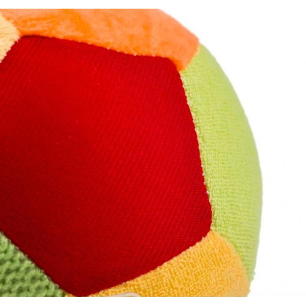 Lopta na hranie je vynikajúca svojou jednoduchosťou. Sprevádza takmer každé dieťa v rôznych životných etapách, reaguje na súčasné kognitívne potreby. Novorodenci sú fascinovaní už pri pohľade na loptičku. Po niekoľkých mesiacoch sa stáva predmetom túžby po čoraz šikovnejších rukách. Postupom času prichádzajú prvé nemotorné kopy, nepresné vhadzovania a nakoniec budete počuť ... „Oci, dal som gól.“Pestré, kontrastné farby usporiadané do geometrických päťuholníkov zameriavajú videnie dieťaťa a pomáhajú rozlišovať farby. Jemný zvuk zvončeka vo vnútri hračky podporuje hranie. Mäkkosť lopty podporuje jej uchopenie a presunutie z jednej ruky do druhej.Vlastnosti:- rozvíja kognitívne schopnosti stimuláciou tvarov, textúr a zvukov- rozvíja predstavivosť a motoriku dieťaťa- podporuje úchopový reflexTechnické parametre:- materiál: 100% polyester- rozmery: 12 cm- hmotnosť: 0,04 kg