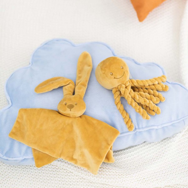 NATTOU Prvá hračka pre bábätka chobotnička PIU PIU Lapidou okrová 0m+