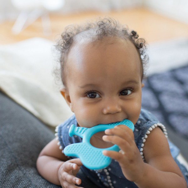 Ohybné hryzadlo pomáha vývoju detských čeľustí. Odolné hryzadlo určené od 3 mesiacov na hryzenie a žuvanie, stimuluje rozmanitou štruktúrou povrchu ďasná a ústa. Hryzadlo ľahko uchopiteľné malými detskými rúčkami je ergonomicky tvarované, aby obsiahlo celú ústnu dutinu dieťatka. Vyrobené je z odolného silikónu so štruktúrovaným povrchom. Hryzadlo vychladené v mrazničke prináša úľavu bolestivým ďasnám. Ideálne od 3 mesiacov na hryzenie a žuvanie, podporujú vývin jazyka a rozvoj reči.Výrobok neobsahuje BPA.