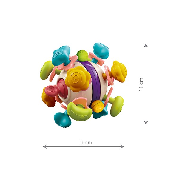 Hračka senzorická s hryzačkou Star ball je perfektnou hračkou pre vaše dieťatko. Celá je vyrobená z bezpečných materiálov a zároveň má premyslený dizajn, ktorý podporuje detské senzorické a motorické zručnosti. Materiál príjemný na dotyk a bezpečný silikón jemne stimulujú detské ďasná čím pomáha pri období prerezávania zúbkov. Rotačný krúžok, ktorý je integrovaný do hračky, nielen priťahuje pozornosť, ale vydáva aj jemné zvuky, ktoré stimulujú sluch dieťaťa. Vlastnosti:Hryzačka - Rúčky sú vyrobené z vysoko kvalitného silikónu, vďaka ktorému sú mäkké a bezpečné. Vďaka štruktúre silikónu si dieťatko jemne stimuluje ďasná pri prerezávaní zúbkov. Rozvoj motorických schopností- Tvar, veľkosť a hmotnosť boli starostlivo prispôsobené tak, aby dokonale zodpovedali manuálnym potrebám dieťatka. Hračka pomáha dieťatku naučiť sa chytiť a držať, zatiaľ čo loptičky pohybovať prstamiStimulujúci zvuk- Keď dieťa otočí rotačný krúžok a farebné časti, tak vydajú zvuk, ktorý upúta pozornosť dieťaťa a vyvíja detský sluch.Praktickosť a bezpečie- Hračka bola navrhnutá s ohľadom na bezpečnosť. Všetky použité materiály sú netoxické a bez BPA.Rozmery produktu: Priemer – 11 cm Odporúčaný vek: 18m+Odstráňte všetky bezpečnostné prvky z hračky, ktoré môžu byť nebezpečné pre dieťa.Pred každým podaním hračky dieťaťu skontrolujte jej kvalitu. Iba nepoškodená hračka zaručuje bezpečné používanie pre vaše dieťa. Hračku vyhoďte, akonáhle si všimnete prvé známky poškodenia.Hračka je odporúčaná pod dohľadom dospelej osoby.Hračka je v súlade s normou EN 71.Odporúčame uchovať obal na informačné účely.Obal uchovávajte na mieste neprístupnom deťom.Obal a upevňovacie prvky nie sú hračkou a môžu predstavovať nebezpečenstvo pre zdravie dieťaťa.Adresa dodávateľa: Babyono sp. z o.o., Kowalewicka 13, 60-002 Poznań, Poland. +48 61 83 90 520, info@babyono.pl, www.babyono.com
