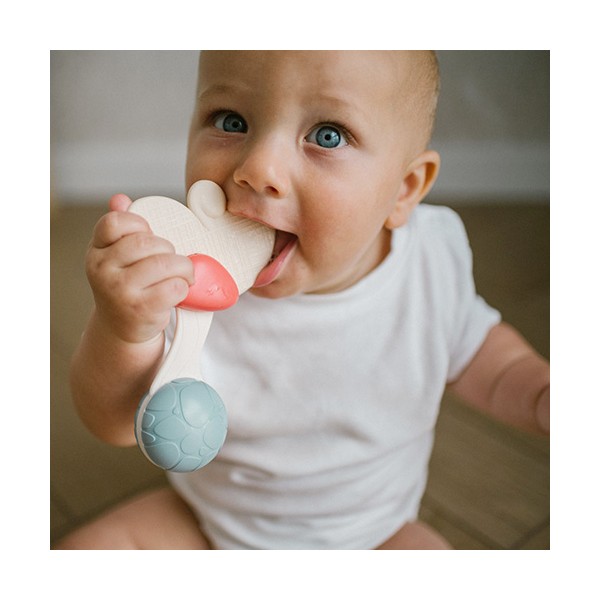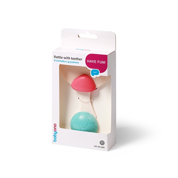 Hrkálka je ideálna prvá hračka pre vaše bábätko. Je vyrobená z bezpečných a na dotyk príjemných materiálov. Vďaka praktickej štruktúre hrkálky ju môže bábätko ľahko držať v malých rukách. Hrkálka je ideálna na zábavné a bezpečné zlepšovanie koordinácie a motorických zručností.Stimulujúce zvuky:- Pri trasení hrkálka vydáva jemné zvuky, ktoré priťahujú pozornosť bábätka a rozvíjajú jeho sluch.Rozvoj motorických zručností:- Trasenie prispieva k zlepšovaniu motorických zručností u bábätiek, pomáha im stimulovať koordináciu ruky a oka a manipuláciu s predmetmi.Hryzačka:- Príjemná silikónová hryzačka jemne masíruje ďasná bábätka a poskytuje úľavu počas obdobia prerezávania zúbkov.Technické vlastnosti:- Vek dieťaťa: 3 m+- Veľkosť produktu: 8 cm x 14 cmBezpečnostné informácie- Pred prvým použitím prelejte výrobok vriacou vodou (nevarte!) a osušte. Na každodennú údržbu odporúčame umývanie v teplej vode s detským mydlom. Po umytí dôkladne opláchnite a osušte. - Odstráňte všetky bezpečnostné prvky z hračky, ktoré by mohli byť nebezpečné pre dieťa.- Pred každým použitím hračky dieťaťu skontrolujte jej kvalitu. Iba nepoškodená hračka zaručuje bezpečné používanie dieťaťom. Hračku vyhoďte, ak zistíte prvé známky poškodenia. - Hračka je určená na hranie pod dohľadom dospelej osoby. Hračka spĺňa normu EN 71.- Odporúčame uchovávať obal pre referenciu. Uchovávajte obal mimo dosahu detí. - Obal a uzávery nie sú hračka a môžu predstavovať zdravotné riziko pre dieťa.Dodávateľ: Babyono sp. z o.o., Kowalewicka 13, 60–002 Poznań, Poland. +48 61 83 90 520, info@babyono.pl, www.babyono.comDodávateľ: ags 92, s.r.o., Drahobejlova 2515/18, 190 00 Praha Česká republika info@petiteetmars.com