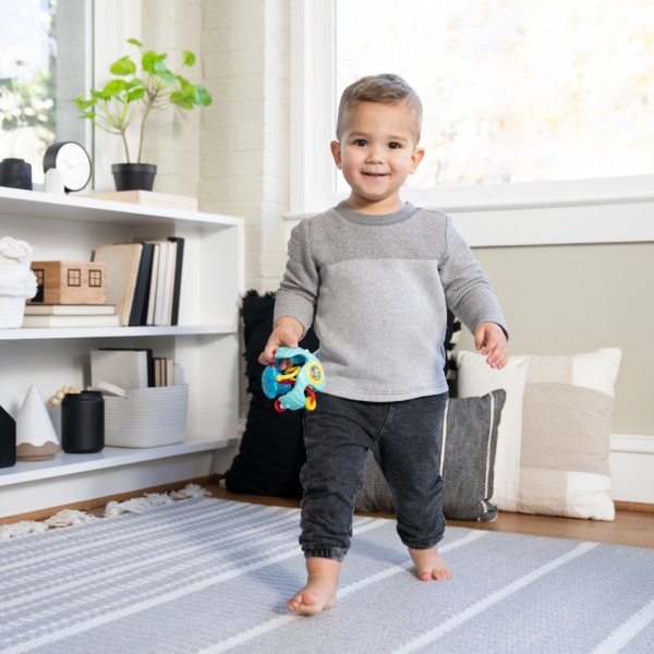 Traste a objavujte! Senzorická hračka je ideálnou hračkou pre deti od 3 mesiacov, ktoré začínajú objavovať svet cez dotyk, zvuk a farby. Táto loptička ľahko padne do rúčky a ponúka množstvo zmyslových podnetov, ktoré podporujú vývoj bábätka a učenie hrou. Tri korálkové dráhy pomáhajú rozvíjať jemnú motoriku a rôzne textúry sú ideálne na hmatové objavovanie. Bábätká milujú sledovanie pohybujúcich sa korálok a učia sa princípu príčina-následok,keď každé zatrasenie vytvorí zvuk! Žiarivé farby a výrazné vzory podporujú zrakový vývoj. Hračka bola nezávisle testovaná a schválená z hľadiska bezpečnosti. Objavovanie nikdy nebolo zábavnejšie! Vlastnosti:- Zmyslová hračka 3v1 – zrak, sluch a hmat- Priehľadné okienko s hrkajúcimi korálkami – učí princíp príčina-následok- Ideálna na doma aj na cesty- Jemné textúry na dotykové skúmanie- Ľahká a ľahko uchopiteľná aj pre najmenšie rúčky- Testovaná bezpečnosť treťou stranou- Jednoduchá údržba – stačí utrieť vlhkou handričkouMateriál: – 100% plast.Vekové rozpätie: 3 - 36 mesiacovRozmery produktu: priemer 10cm Dôležité: Pred odovzdaním výrobku dieťaťu odstráňte všetok obal a upevňovacie prvky. Tento obal a návod na použitie si uschovajte pre budúce použitie – obsahujú dôležité informácie. V rámci neustáleho procesu zlepšovania a inovácie naše výrobky priebežne aktualizujeme.Adresa dodávateľa: KIDS2 EUROPE BV 5 Keizersgracht 287, 1016 ED Amsterdam, Netherlands; +31 20 241 0934.