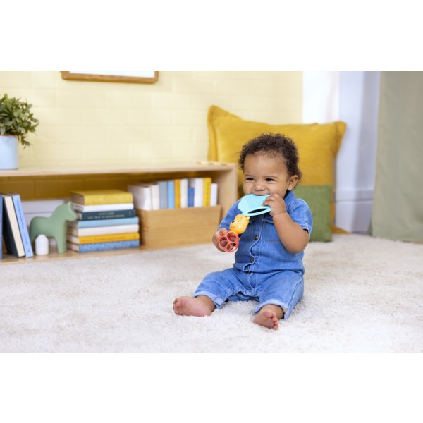 Rozžiarte čas hrania najmenších s touto roztomilou sadou Disney Baby Winnie the Pooh! Sada 2v1 obsahuje pružnú, ľahko uchopiteľnú hrkálku typu Oball s motívom milovaného Macka Pú a hryzačku v tvare medového hrnčeka pre úľavu od bolesti ďasien pri prerezávaní sa prvých zúbkov. Prineste do hry kúzlo rozprávky s veselými farbami a známymi postavičkami. Perfektný darček pre bábätká na narodeniny, Vianoce alebo ako darček na baby shower. Vlastnosti:- Inšpirované svetom Macka Pú - veselými farbami a známymi postavičkami- Hrkálka Oball - ľahká, pružná a ideálna pre drobné ručičky – podporuje jemnú motoriku, sluchové vnímanie a hmatové objavovanie.- Hryzačka v tvare medového hrnčeka - pomáha uľaviť od bolesti ďasien pri prerezávaní zúbkov.- Ideálna sada na hranie doma aj na cestách, či už idete na výlet alebo na prechádzku.Materiál: – 99% plast a 1% kov.Vekové rozpätie: 0 – 36 mesiacovRozmery produktu: 10 cm x 4,5 cm x 5,5 cm Dôležité: Pred odovzdaním výrobku dieťaťu odstráňte všetok obal a upevňovacie prvky. Tento obal a návod na použitie si uschovajte pre budúce použitie – obsahujú dôležité informácie. V rámci neustáleho procesu zlepšovania a inovácie naše výrobky priebežne aktualizujeme.Adresa dodávateľa: KIDS2 EUROPE BV 5 Keizersgracht 287, 1016 ED Amsterdam, Netherlands; +31 20 241 0934.