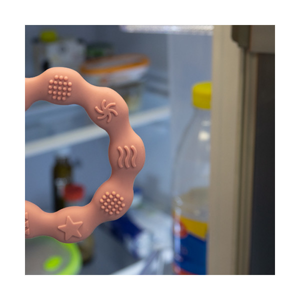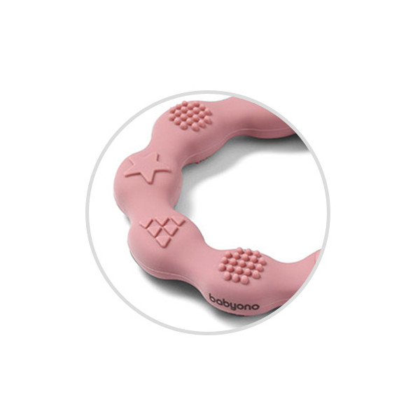 Silikónová hryzačka v tvare kruhu je nenahraditeľnou pomôckou pri prerezávaní prvých zúbkov.Dá sa schladiť v chladničke alebo možno na ňu aplikovať špeciálny gél. Tým pomáha uľaviť pri bolestiach ďasien spôsobených rastom zubov.Pružný a mäkký materiál rozmanitej textúry jemne masíruje ďasná bábätka.Vlastnosti:- mäkká a šikovná hryzačka navrhnutá presne do malých ručičiek- úľava od bolesti ďasien vďaka rozmanitému tvaru a výstupkom na povrchu- možnosť aplikácie gélu pri prerezávaní ďasien- možnosť chladenia v chladničke- geometrické vzory na hryzačke dieťa zaujmú, stimulujú a učia - materiál: bezpečný silikón- neobsahuje BPA- vhodná pre deti 0m+Rozmery (veľkosť balenia) 10 cm x 14 cmOdstráňte všetky bezpečnostné prvky z hračky, ktoré môžu byť nebezpečné pre dieťa.Pred každým podaním hračky dieťaťu skontrolujte jej kvalitu. Iba nepoškodená hračka zaručuje bezpečné používanie pre vaše dieťa. Hračku vyhoďte, akonáhle si všimnete prvé známky poškodenia.Hračka je odporúčaná pod dohľadom dospelej osoby.Hračka je v súlade s normou EN 71.Odporúčame uchovať obal na informačné účely.Obal uchovávajte na mieste neprístupnom deťom.Obal a upevňovacie prvky nie sú hračkou a môžu predstavovať nebezpečenstvo pre zdravie dieťaťa.Adresa dodávateľa: Babyono sp. z o.o., Kowalewicka 13, 60-002 Poznań, Poland. +48 61 83 90 520, info@babyono.pl, www.babyono.com