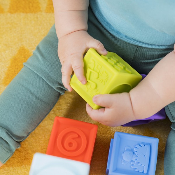 Nezáleží či sa dieťatko bude hrať doma, na cestách alebo vo vode. Set 9 farebných stohovacích kociek mu bude robiť zábavnú spoločnosť nech je kdekoľvek. Kocky sú ľahko stlačiteľné v pútavých dúhových farbách a v ideálnej veľkosti do detských rúk. Precvičte si počítanie spájaním a ukladaním kociek v poradí podľa čísel. Je to také jednoduché ako 1,2,3! Zvieratá, čísla a farby vytvárajú množstvo možností na hranie či už pre samo dieťatko alebo s kamarátmi či rodičmi. - set 9 kociek v dúhových farbách- objavte čísla, zvieratá, farby a ďalšie- vhodné na hranie nech kdekoľvek – doma, na cestách, vo vode- ľahko uchopiteľné malými ručičkami- stohovanie kociek podporuje jemné motorické zručnosti - ľahká údržba- vhodné pre deti od 3 mesiacovRozmery: 5,7 x 6,17 x 5,73 cm