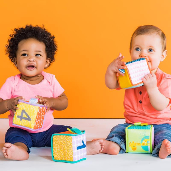 Skladať, stavať a skúmať s týmito mäkkými látkovými kockami!- 4 mäkké kocky s 3D funkciou, vráskami, saténové tagy, hrkajúce, cinkajúce- Každá kocka má číslo, písmeno, roztomilý charakter a farebný vzor- Všité slučky pre on-the-go zábavuTechnické parametre:- Rozmery výrobku: 8.89 x 8.89 x 8.89 cm- Rozmery balenia: 17.78 x 8.89 x 21.59 cm- Vhodné pre deti od 3 mesiacovAdresa dodávateľa: KIDS2 EUROPE BV 5 Keizersgracht 287, 1016 ED Amsterdam, Netherlands; +31 20 241 0934