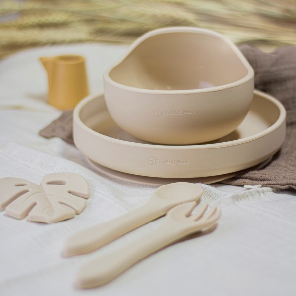 PETITE&MARS Set jedálenský silikónový TAKE&MATCH 3 ks Desert Sand 6m+