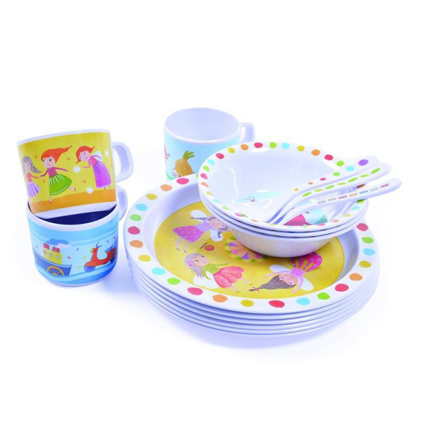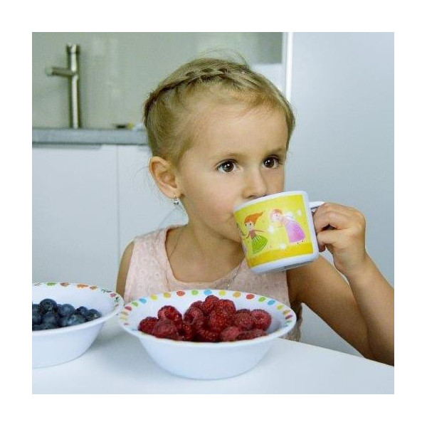Rozprávková jedálenská súprava v darčekovom balení očarí každého malého papkáča. Jedenie bude omnoho veselšie a zábavnejšie. Podnecuje k hravému učeniu a lepšiemu papaniu. Veľkosť ideálna pre detské ručičky. Jednotný rozprávkový dizajn od slovenskej ilustrátorky detských knižiek, Kataríny Ilkovičovej.Set obsahuje: tanierik, misku, hrnček s uškom a dve lyžičky.Balené v krásnej krabici. Ideálne aj ako darček.Vlastnosti:- originálny dizajn zo Slovenska: rozprávkové víly, chlapčenské dopravné prostriedky alebo jelenia rodinka,- 1x tanierik, 1x miska, 1x hrnček s uškom, 2 lyžičky,- vhodné od 6 mesiacov,- 100% nezávadný melamín,- bez BPA, ftalátov a PVC,- testované v Českej republikeMelamín je veľmi trvácny, ľahký a dobre udržiavateľný materiál vhodný do horného koša umývačky riadu. Neodporúčame použitie v mikrovlnnej rúre.