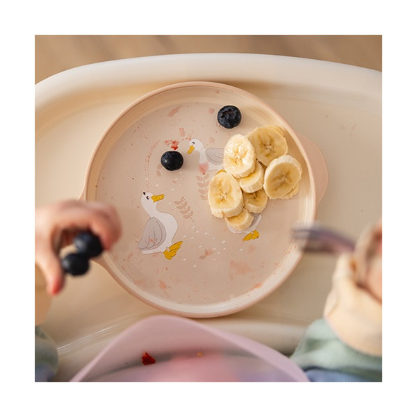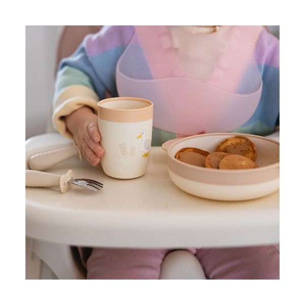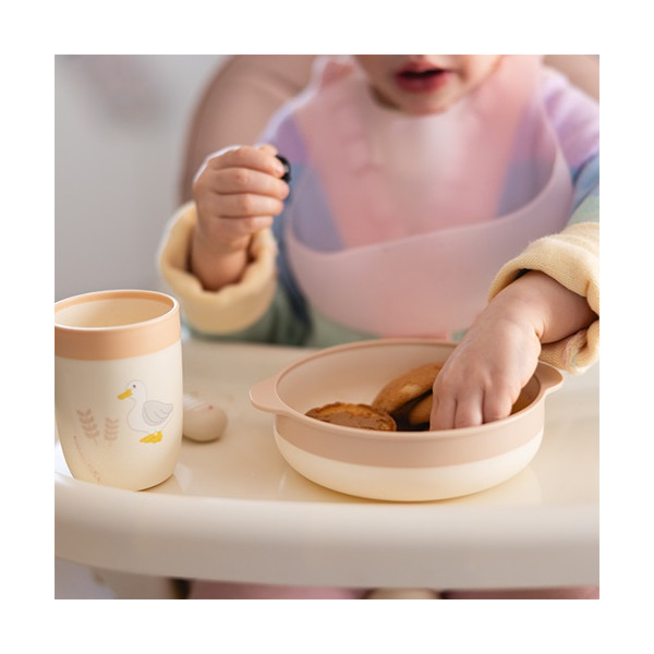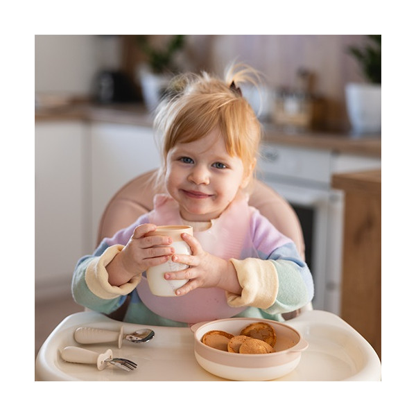 Jedálenská súprava pre deti – tanier, miska a pohárik pre samostatné jedenie. Naša detská jedálenská súprava obsahuje všetko, čo potrebujete na to, aby vaše dieťa mohlo začať s prvými pokusmi o samostatné jedenie. Súprava obsahuje tanier, misku a pohárik, ideálne na podávanie teplých aj studených pokrmov, a tiež na učenie sa piť z otvoreného pohára. Odborníci tvrdia, že tento spôsob pitia prispieva aj k rozvoju reči a zlepšuje koordináciu rúk a očí, posilňuje svaly tváre a úst a obmedzuje kontakt nápojov so zubami, čím pomáha predchádzať zubnému kazu. Súprava rastie spolu s vaším dieťaťom – je praktická, bezpečná a podporuje rozvoj zdravých návykov. Sú ľahko uchopiteľné aj pre malé detské ručičky.Vlastnosti: - riady sú vyrobené z ľahkého, no odolného plastu (PP), vďaka čomu sú ideálne na každodenné použitie - zaoblené hrany sú prispôsobené pre pohodlné držanie a zároveň šetrné k citlivým detským perám a ďasnám- tanier, miska aj pohár majú protišmykovú úpravu dna, takže počas jedenia sa nešmýkajú po stole, čím sa znižuje neporiadok a zvyšuje komfort dieťaťa- ideálna na každodenné jedlá - učenie sa piť z otvoreného pohára podporuje prirodzený vývin dieťaťaDôležité: Odstráňte všetky prvky, ktoré by mohli byť pre dieťa nebezpečné. Pred každým použitím výrobok skontrolujte. Pri prvých známkach poškodenia alebo opotrebenia ho vymeňte. Vždy používajte pod dohľadom dospelej osoby – výrobok nie je hračka. Odporúčame uchovať obal na informačné účely mimo dosahu detí. Pred prvým použitím prelejte vriacou vodou (nevariť!) a osušte. Ak výrobok čistíte v umývačke riadu, po skončení programu ho ihneď vyberte a osušte. Ponechanie v umývačke môže spôsobiť deformácie.Adresa dodávateľa: Babyono sp. z o.o., Kowalewicka 13, 60-002 Poznań, Poland. +48 61 83 90 520, info@babyono.pl, www.babyono.com