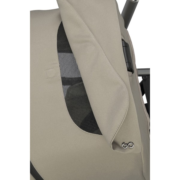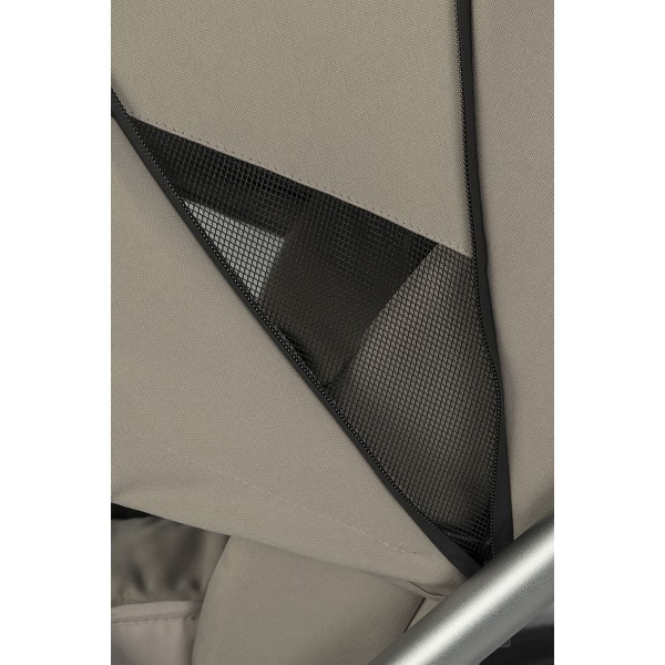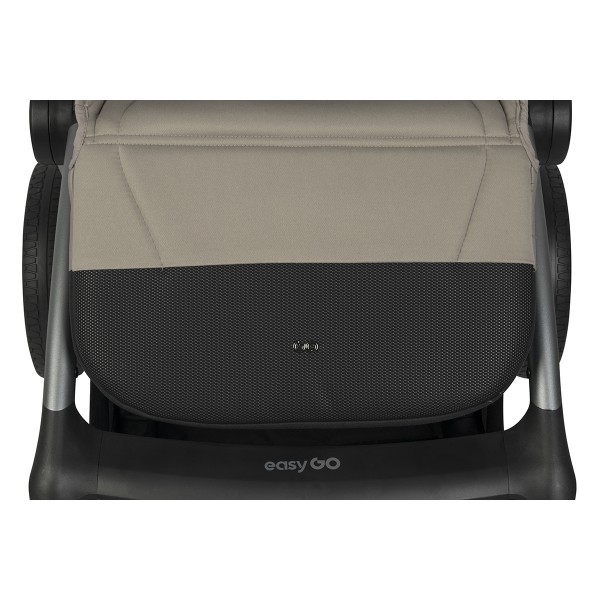 Poťah kočíka EASYGO GIRO je vyrobený z módneho úpletu. Sedadlo má špeciálnu časť vyrobenú z vetranej tkaniny odvádzajúcej vlhkosť. V hornej časti chrbtovej opierky je pohodlný vankúš, ktorý sa dá navyše jednoducho vybrať. Opierka nôh je zakončená technickou tkaninou odolnou voči nečistotám.