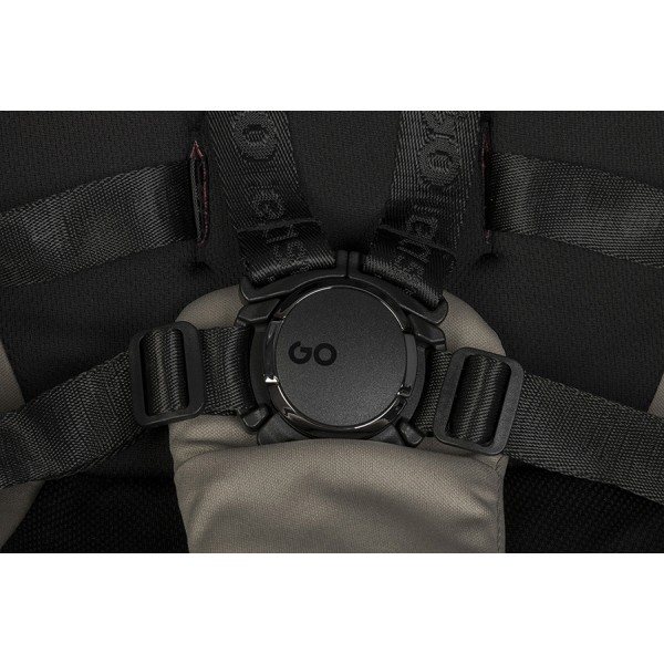 Päťbodové bezpečnostné pásy spojené s magnetickou prackou sú mimoriadne bezpečné a pohodlné na používanie. Magnetická pracka minimalizuje riziko nesprávneho pripútania dieťaťa a 3-stupňové výškové nastavenie ramenných popruhov umožňuje prispôsobiť sedačku dieťaťu v každom štádiu vývoja. Zábrana sa vyklápa a poskytuje pohodlný prístup k pásom.