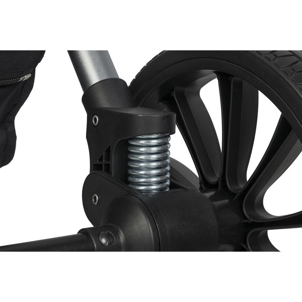 Veľmi dobré tlmenie nárazov a veľké gélové kolesá zaisťujú pohodlie pre dieťa aj rodiča tlačiaceho kočík. Zdvih tlmičov je taký veľký, že kočík je už od prvých dní používania mäkký, aj keď je dieťa stále veľmi ľahké. Predné kolesá sú otočné a majú aretáciu pre priamu jazdu. Široký rozchod kolies zaisťuje ľahké otáčanie a manévrovanie v stiesnených priestoroch. Veľké zadné kolesá a tvar konštrukcie kočíka zaisťujú ľahký prístup pri stúpaní na obrubník.