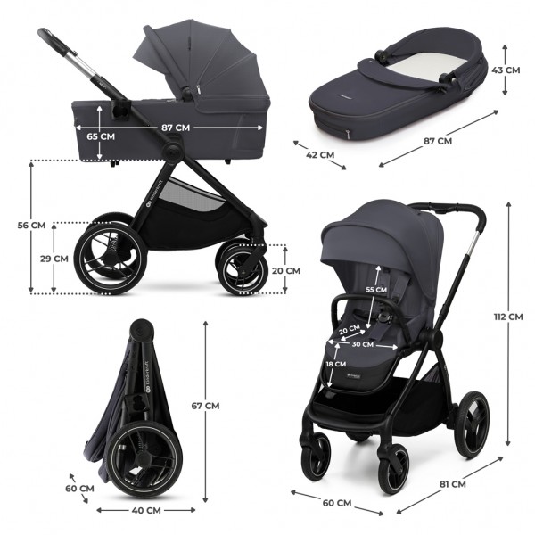 Toto je NEA 2 - multifunkčný kočík 2v1, ktorý vzbudí váš záujem kompaktným dizajnom a kolesami do každého terénu. Veľké kolesá vám bez väčších problémov umožnia prekonať vysoké obrubníky, či nerovné mestské chodníky. NEA 2 je odpoveďou na potreby moderných rodičov, ktorí hľadajú stabilný, pevný, no napriek tomu dobre ovládateľný kočík. Okienko na strieške vám umožní jednoduchú kontrolu, či batoľa počas prechádzky zaspalo, a keď sa náhodou stane, že dieťa kočík zašpiní - poťah na pranie ľahko stiahnete. Brzda STOP & RIDE umožňuje ľahké zaistenie a odistenie kočíka a jednoduchý systém skladania a praktické riešenia ako sú SELF STANDING alebo AUTO LOCK uľahčujú prepravu a skladovanie. Fusak Jibot 3v1 Horizontal Ink Black je súčasťou balenia.Čo Vám NEA 2 ponúka?- Multifunkčný kočík: veľká vanička, pohodlný kočík, možnosť cestovania v dvoch smeroch.- Od narodenia do 22 kg – kočík má veľkú vaničku s mäkkým matracom, ktorú môže dieťa používať do 9 kg alebo do chvíle, keď sa začne prevracať. Sedadlo kočíka je možné namontovať smerom dopredu alebo dozadu voči smeru jazdy.- Kolesá odolné proti prepichnutiu.- Obratný kočík – ľahká konštrukcia a pohodlná teleskopická rukoväť pre rodiča umožňujú ľahké manévrovanie – aj jednou rukou!- Pohodlná, priestranná vanička s praktickou rukoväťou, ktorá rodičom umožňuje ľahko prenášať dieťa.- Veľké kolesá s tlmičmi nárazov umožňujú jednoduché zdvihnutie kočíka a nevyžadujú pumpovanie.- Sada praktického príslušenstva: univerzálne adaptéry na autosedačku, nánožník pre vaničku a športovú časť, matrac do vaničky, držiak na pohár, pláštenka, sieťka proti hmyzu a nová prebaľovacia taška.- Vďaka adaptérom zahrnutým v sade môžete jednoducho pripevniť autosedačku na rám kočíka.- Na všetky druhy počasia – kočík má striešku s ventilačným panelom, dodatočnou slnečnou clonou a okienkom, cez ktoré vidíte svoje dieťa v kočíku. Strieška je vyrobená z nepremokavého materiálu UPF50+, ktorý chráni vaše dieťa pred škodlivým UV žiarením.- Nová magnetická pracka a dizajn podložiek.- Predné kolesá sú otočné (360 stupňov) a je možné ich uzamknúť na priamu jazdu.- Košík s nosnosťou až 5 kg.Rozmery:- rozmery zloženého výrobku: 40 × 67 × 60 cm- rozmery rozloženého výrobku: 112 × 60 × 88 cmKolesá:- priemer predných kolies: 21 cm - priemer zadných kolies: 29 cm Ostatné:- šírka sedačky: 31 cm- dĺžka sedačky: 21 cm- šírka chrbtovej opierky: 29 cm- dĺžka chrbtovej opierky: 55 cm- šírka podnožky: 30 cm- dĺžka podnožky: 18 cm- dĺžka sedačky v ľahu: 94 cm- vzdialenosť sedačky od zeme: 56 cm- výška rodičovskej rukoväte: 98,5-101-103,5-106 cm- rozmery košíka: 49 x 39 x 18 cm- priemer držiaka na pohár: 7 cm- vonkajšie rozmery vaničky: 83 x 42 x 65 cm- vonkajšie rozmery vaničky so zloženou búdkou: 83 x 42 x 33 cm- vnútorné rozmery vaničky: 76 x 33 x 23 cm- vnútorný priemer predných kolies: 14,5 cm- vnútorný priemer zadných kolies: 21,5 - hmotnosť výrobku: 11,6 kg- hmotnosť rámu s kolesami: 7,8 kg- hmotnosť samotnej sedačky: 3,8 kg- hmotnosť samotnej vaničky: 4 kg(SK) UPOZORNENIE! Tento výrobok nie je vhodný na behanie, korčuľovanie. Výrobok je určený pre deti s hmotnosťou / veku: gondola od narodenia do 9 kg, kočík od 0 mesiacov do 22 kg alebo do 4 rokov, v závislosti od toho, čo nastane skôr. Týka sa vaničky: UPOZORNENIE! Nikdy nepoužívajte prenosnú tašku so stojanom. Tento produkt, je určený pre deti, ktoré si nedokážu samy sadnúť, otáčať sa na bruško ani štvornožkovať. Maximálna váha dieťaťa: 9 kg.Adresa dodávateľa: Supl4kraft sp. z o.o.ul. Tatrzanska 1/5,60-413 Poznan, Polandsupport@kinderkraft.comwww.kinderkraft.com