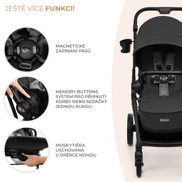 Stačí jediný pohľad, aby ste si YOXI zamilovali. Je to multifunkčný detský kočík 2 v 1, ktorý vás bude sprevádzať na prechádzkach od narodenia vášho dieťaťa až do 4 rokov (22 kg). Je mimoriadne obratný a veľmi ľahko sa s ním manévruje. Na samom začiatku budete svoje dieťa voziť v pohodlnej hlbokej vaničke s mäkkým matracom a veľkou nepremokavou strieškou s filtrom UPF50+, ktorá umožňuje odkrytie látky, takže vaše dieťa má panoramatický výhľad, keď leží na bruchu. Keď vaše dieťatko vyrastie, prenosná vanička sa zloží na plocho a uloží sa do skrine - a namiesto nej vás privíta športové sedadlo, ktoré sa dá pripnúť smerom dopredu alebo dozadu voči smeru jazdy.Kočík sa rýchlo a jednoducho skladá s pripnutým sedadlom. Široká škála nastavení vám umožní prispôsobiť kočík YOXI nielen vášmu dieťaťu, ale aj sebe. A vďaka neprepichovateľným kolesám budete vždy pripravení na prechádzku. Kolesá na YOXI nie je potrebné nafukovať! Kočík sa dodáva aj s celým radom praktického príslušenstva, ako je sieťka proti hmyzu, kryt na detské nožičky, pláštenka proti dažďu, držiak na pohár, taška na rukoväť pre rodiča a adaptéry na detskú autosedačku. Adaptéry vám umožnia vytvoriť TRAVEL SYSTEM, ak už máte detskú autosedačku. A to všetko v jednom kočíku!Fusak Jibot 3v1 Horizontal Ink Black je súčasťou balenia.Jeden kočík - veľa možnostíDetský kočík YOXI 2 v 1 je určený pre deti od narodenia do 22 kg. Najskôr poslúži ako hlboký kočík s priestrannou vaničkou, a neskôr ako pohodlný športový kočík, ktorý možno pripojiť smerom dopredu alebo dozadu voči rodičovi. YOXI umožňuje vytvoriť TRAVEL SYSTEM.Ľahký a obratnýYOXI spája dizajn a funkčnosť. Ľahko sa s ním manévruje a vďaka jeho obratnosti sa ľahko vyhnete každej prekážke. Má odpružený hliníkový rám a neprepichovateľné kolesá, ktoré nie je potrebné nafukovať. Predné kolesá môžete zablokovať pre jazdu priamo - ideálne pre drsnejší terén, napríklad prechádzky po parkových cestičkách.Ideálny pre bábätkáDetský kočík YOXI je určený pre bábätká. Na vaše bábätko čaká veľká, pohodlná vanička s mäkkým matracom a krytom na chladnejšie dni. Vetracie sieťky poskytnú vášmu dieťaťu, ktoré leží na bruchu, panoramatický výhľad na svet. A keď vaše dieťatko z vaničky vyrastie, môžete ju jednoducho zložiť na plocho a uložiť do skrine.Ochrana pred nečasomStriešky v športovom kočíku a vaničke sú veľké, s vetraním a filtrom UPF50+. Sú nepremokavé a majú dodatočný vetrací panel, ideálny na horúce dni.Plne nastaviteľný pre lepšie prispôsobenieNa športovom kočíku YOXI môžete nastaviť opierku nôh aj chrbta. To vám umožní vytvoriť pohodlný priestor pre vaše dieťa na zdriemnutie počas prechádzok. YOXI sa prispôsobí aj vám: nastaviteľná rodičovská rukoväť vám umožní prispôsobiť kočík vašej výške.Na prechádzky aj odpočinokSedadlo YOXI je v správnej výške, aby ste mohli kočík prisunúť k stolu. Kočík môžete zložiť jedným pohybom - skladá sa dovnútra, vďaka čomu sa látka kočíka pri prenášaní nezašpiní. Ešte viac funkciíMEMORY BUTTONS SYSTEM umožňuje rýchlo odpojiť športový kočík a vaničku od rámu - len jednou rukou. Magnetická spona pásov uľahčuje zapínanie dieťaťa v kočíku. A pomocou priložených adaptérov môžete vytvoriť TRAVEL SYSTEM, ak máte detskú autosedačku.Všetko po rukeVeľkorysý kôš s nosnosťou až 5 kg pojme všetky potrebné veci. Ďalšia deka a plienky? Alebo nákupy, ktoré ste urobili po ceste domov? Jednoduchý prístup z oboch strán vám umožní rýchlo vytiahnuť každú vec. Kočík sa dodáva aj s príslušenstvom: sieťkou proti hmyzu (v opierke na nohy, ktorú budete mať vždy so sebou), kryt na nožičky, pláštenkou proti dažďu, držiakom na pohár, taškou na rukoväť pre rodiča a adaptérmi na autosedačku.Technické parametry:Materiál:- rám: hliník- materiál: polyester- adaptéry: plast- kolesá: gumové s penovou výplňou- matrac: polyester- taška pre rodiča: polyester- maximálna hmotnosť dieťaťa: 22 kg- maximálna nosnosť koša: 5 kg- hmotnosť: 11 kg(SK) Týka sa vaničky: UPOZORNENIE! Tento produkt, je určený pre deti, ktoré si nedokážu samy sadnúť, otáčať sa na bruško ani štvornožkovať. Maximálna váha dieťaťa: 9 kg. UPOZORNENIE!Nikdy nepoužívajte prenosnú tašku so stojanom. Výrobok je určený pre deti s hmotnosťou / veku: gondola od narodenia do 9 kg, kočík od 0 mesiacov do 22 kg alebo do 4 rokov, v závislosti od toho, čo nastane skôr. UPOZORNENIE! Tento výrobok nie je vhodný na behanie, korčuľovanie.Adresa dodávateľa: Supl4kraft sp. z o.o.ul. Tatrzanska 1/5,60-413 Poznan, Polandsupport@kinderkraft.comwww.kinderkraft.com