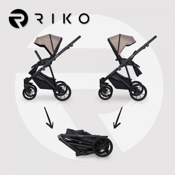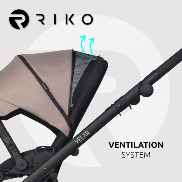 Kočík 2v1 RIKO VELAR je dostupný v 2 farebných radoch. Štyri základné farby majú matnú čiernu povrchovú úpravu a ich čalúnenie je vyrobené z melanžovej látky. Jedna doplnková farba s názvom MAGMA má módne medené povrchové úpravy a čalúnenie z 3D látky (voštinové). Vonkajšie látky sú impregnované, aby zabezpečili odtekanie vody a majú UV50+ filter, ktorý chráni vaše dieťa pred škodlivým žiarením a zachováva farbu látky.