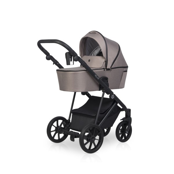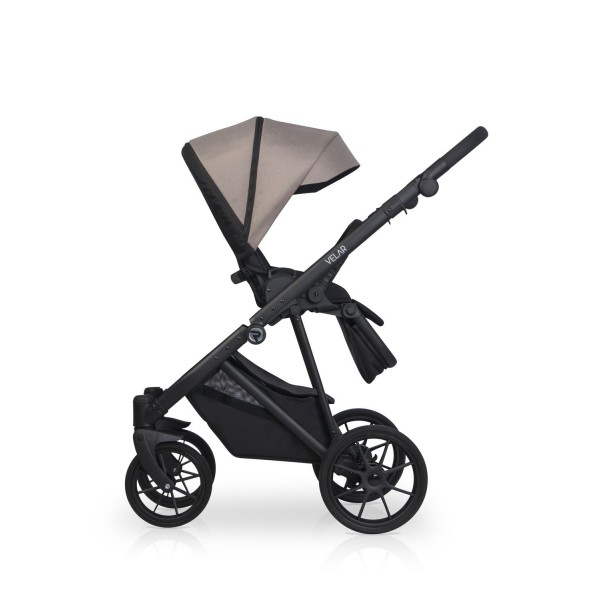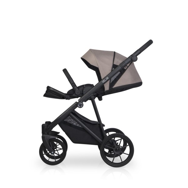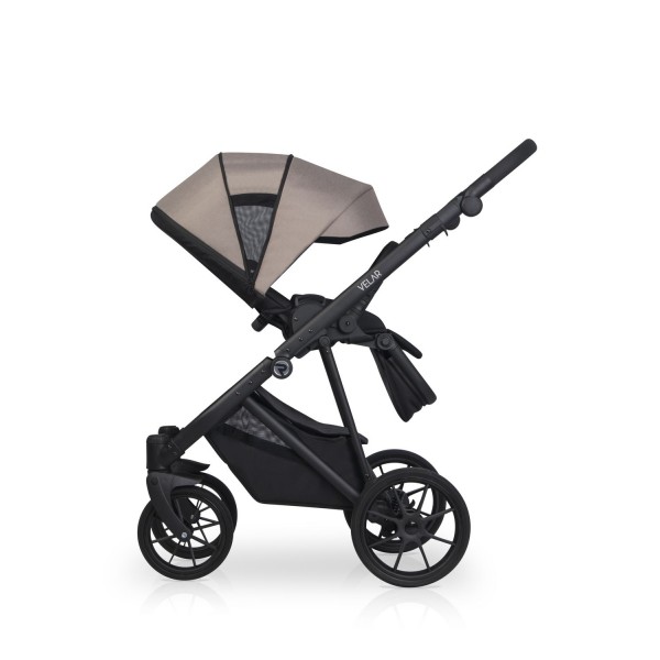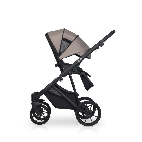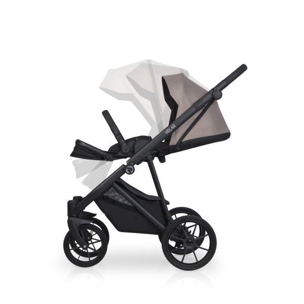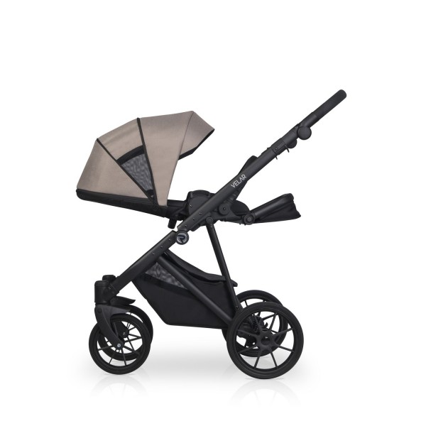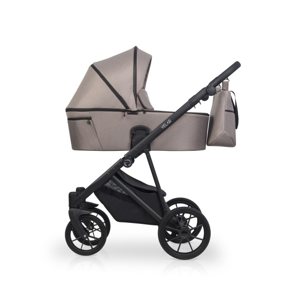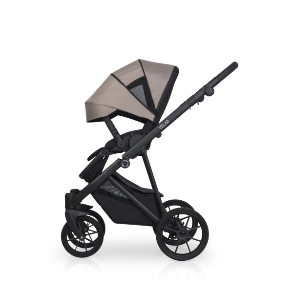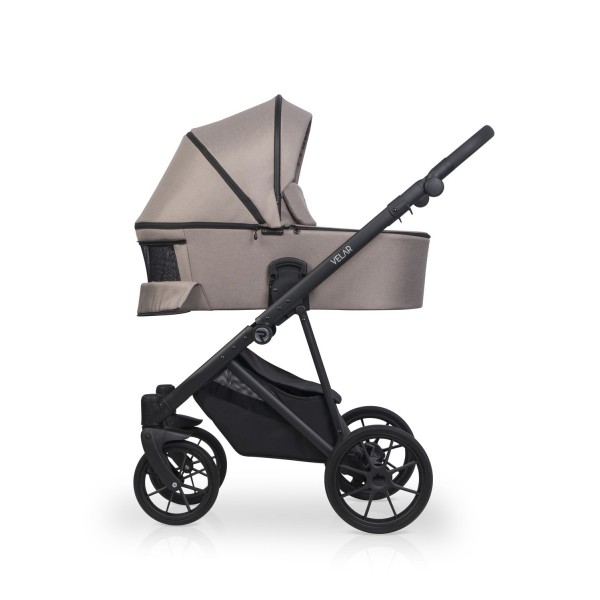 Vanička kočíka VELAR je veľká a pohodlná. Vnútro je vyrobené z vysokogramážnej prešívanej bavlny, matrac je vyplnený kokosovými vláknami, ktoré zaisťujú optimálnu tvrdosť, sú antialergické a neabsorbujú vlhkosť. Vďaka dvom veľkým ventilačným panelom je vanička VELAR ako stvorená na teplé letné dni a umožňuje cirkuláciu vzduchu. Predný sieťovaný ventilačný panel poslúži aj ako okienko pre dieťa. Oba panely sú pevne uzavreté zipsami, takže vanička je celoročná. Dodatočný vyvýšený panel na kryte vaničky chráni vaše dieťatko proti vetru aj vo veľmi nepriaznivých poveternostných podmienkach.