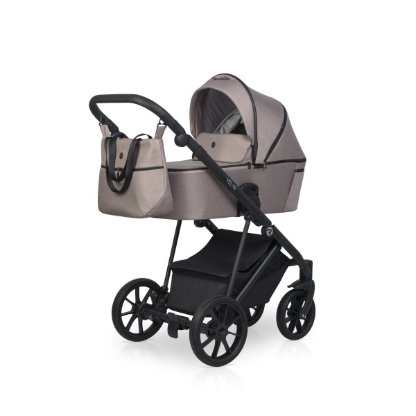 Set kočíka 2 v 1 obsahuje veľkú praktickú tašku pripevnenú na madlo kočíka, nánožník so systémom rýchleho prístupu k dieťaťu, pláštenku, moskytiéru, košík pripevnený na rám kočíka s klopou uzavretou na magnety, a bariérku chrániaca dieťa.