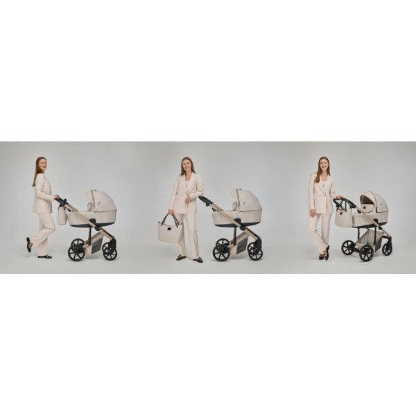 Model kočíka Adamex Dolce je moderný a pohodlný kočík, ktorý bude pre vás a vaše dieťa spoločníkom každý deň a v každom počasí. - Tento model sa vyznačuje plne odnímateľnou látkovou časťou striešky vaničky, ktorá je zospodu tvorená vzdušnou moskytiérou. Okrem toho má vanička dva vetracie otvory na zips (vpredu a vzadu). - Pre ešte väčšie pohodlie slúži slnečná clona, ktorá je ideálna na slnečné dni a chráni jemnú pokožku vášho dieťaťa pred slnečnými lúčmi.- Dolce má okrem pohodlia a funkčnosti aj dokonale odpružený rám! Systém SAS umiestnený vo vidliciach predných kolies, nastaviteľné zadné odpruženie s tlmením nárazov (umožňujúce rôzne úrovne tvrdosti) a centrálny tlmič nárazov, ktorý je možné podľa potreby zapínať alebo vypínať, zabezpečujú plné pohodlie bez ohľadu na povrch, po ktorom idete.- Základom pohodlia je moderný a extrémne rýchly systém plochého skladania vaničky, ktorý vám umožní jej rýchle zloženie a rozloženie.- Pohodlný penový vyrovnávací matrac (s dodatočným vystužením zospodu) umiestnený vo vaničke vďaka svojej elasticite a flexibilnej štruktúre zaručuje pohodlie pri spaní a vysokú kvalitu odpočinku, ktorým je spánok dieťaťa.- Set obsahuje aj športové sedadlo kočíka, ktoré môžete namontovať na rám v oboch smeroch a čo je najdôležitejšie, môžete ho zložiť spolu s rámom bez ohľadu na smer otočenia.- Vaničková aj športová verzia majú adaptéry s takzvaným pamäťovým systémom, čo sú pamäťové tlačidlá, ktoré umožňujú extrémne jednoduché odstránenie vaničky z rámu jednou rukou. Stačí ich stlačiť a pamäťový systém udrží tlačidlá stlačené, kým ho neodstránite.- Súčasťou setu je: módna taška pre mamičky s popruhom, univerzálna pláštenka do dažďa pre verziu s vaničkou aj športovou časťou, moskytiéra, držiak na poháre a slnečná clona.Technické špecifikácie:- rozmery kočíka s vaničkou: 102 x 58 x 107-117 cm (D x Š x V)- rozmery kočíka so športovou časťou: 102 x 107 cm (D x V)- hmotnosť s hlbokou vaničkou: 12,6 kg- hmotnosť so športovým sedadlom: 12,2 kg- nosnosť kočíka: 15 kgDôležité! Pokyny si pozorne prečítajte a uschovajte na neskoršie použitie.Upozornenie:- nikdy nenechávajte dieťa bez dozoru- používajte popruhy, ak sa dieťa dokáže bez pomoci posadiť- pred použitím si overte, že sú všetky zaisťovacie prvky zaklesnuté- pri skladaní a rozkladaní tohto výrobku zaistite, aby dieťa nebolo v kočíku a ani blízko neho aby nemohlo dôjsť k poraneniu dieťaťa- tento výrobok nie je hračka, nedovoľte dieťaťu, aby sa s týmto výrobkom hralo- nepoužívajte túto sedačku pre deti mladšie ako 6 mesiacov- vždy používajte brzdiaci systém- pred použitím skontrolujte, či sú zaisťovacie prvky lôžka alebo sedačky alebo autosedačky správne zaklesnuté- tento výrobok nie je vhodný na behanie alebo jazdu na korčuliachDôležité informácie:Univerzálny detský kočík je určený pre deti vo veku 0-36 mesiacov s telesnou hmotnosťou max. 15 kg. Vanička je určená pre deti o hmotnosti maximálne 9 kg. Ak kočík nepoužívate, vždy používajte parkovaciu brzdu. Nepoužívajte iný ako výrobcom dodaný matrac. Pri ukladaní a vyberaní dieťaťa sa uistite, že je parkovacia brzda zaistená. Maximálne zaťaženie košíka pod kočíkom je 2 kg.Na riadidlá kočíka zavesujte len tašku na príslušenstvo, ktorá bola dodaná spolu s kočíkom. Jej maximálna hmotnosť činí 2 kg, akákoľvek záťaž zavesená na riadidlách má vplyv na jeho stabilitu. Kočík je určený na prepravu jedného dieťaťa. Tento podvozok možno používať len so sedačkou, vaničkou a autosedačkou, ktoré boli dodané výrobcom v jednej sade. Používajte výhradne náhradné diely dodávané alebo odporúčané výrobcom. Akékoľvek doplnkové vybavenie, ktoré nebolo uvedené výrobcom, nesmie byť použité. Kočík nenahradzuje kolísku ani detskú postieľku. Keď potrebuje dieťa spať, odporúčame ho uložiť do vhodnej vaničky, kolísky alebo postieľky - týka sa detskej autosedačky používanej spolu s podvozkom kočíka. Pás v rozkroku používajte vždy súčasne s bedrovými pásmi. Nikdy nenechávajte kočík s dieťaťom na svahu, a to ani v prípade, že je brzda zaistená. Malé diely, ako sú poistky na osy, zabezpečte počas montáže kočíka tak, aby sa k nim nedostali deti. Nikdy neodstavujte kočík s dieťaťom v blízkosti bazénov, schodíšť a ohňa. Plastové časti obalu uchovávajte mimo dosahu detí, aby nemohlo dôjsť k riziku jeho udusenia. V prípade preváženia dieťaťa so zdvihnutou hlavovou opierkou vaničky je bezpodmienečne nutné používať doplnkové bezpečnostné pásy.Dvíhanie hlavovej opierky nepoužívajte u novorodenca. Bezpečnostné popruhy používajte od momentu, kedy vaše dieťa začne samostatne sedieť. Kočík slúži na vonkajšie použitie. Ak je skladovaný vo vnútorných obytných priestoroch, potom vždy používajte ochranné poťahy na kolesá. Pri nájazde na obrubník alebo iné vyvýšené miesto nadvihnite predné kolesá. Silný náraz do prekážky môže z spôsobiť deformáciu konštrukcie. S kočíkom nejazdite po schodoch. Prenášanie dieťaťa v kočíku po schodoch je nebezpečné. Neprenášajte kočík jeho dvíhaním za riadidlá, madlo či striešku. Kočík sa prenáša uchopením za boky. Zákaz prenášania dieťaťa vo vaničke pridržujúc za rukoväť striešky. Ak došlo k poškodeniu akejkoľvek časti kočíka, nepoužívajte ho. Pred montážou sa uistite, či je výrobok a všetky jeho súčasti v poriadku, ak sú poškodené, výrobok by nemal byť používaný. Pri skladaní a rozkladaní kočíka sa uistite, či sa dieťa nachádza v bezpečnej vzdialenosti. Pri nastavovaní dávajte pozor na to, aby jednotlivé časti kočíka n