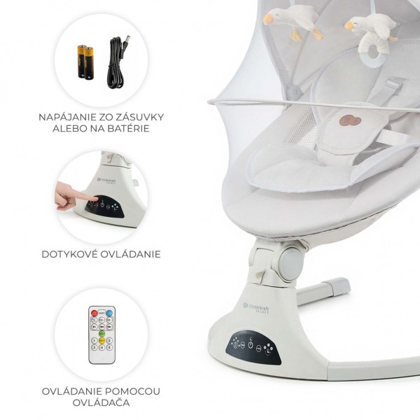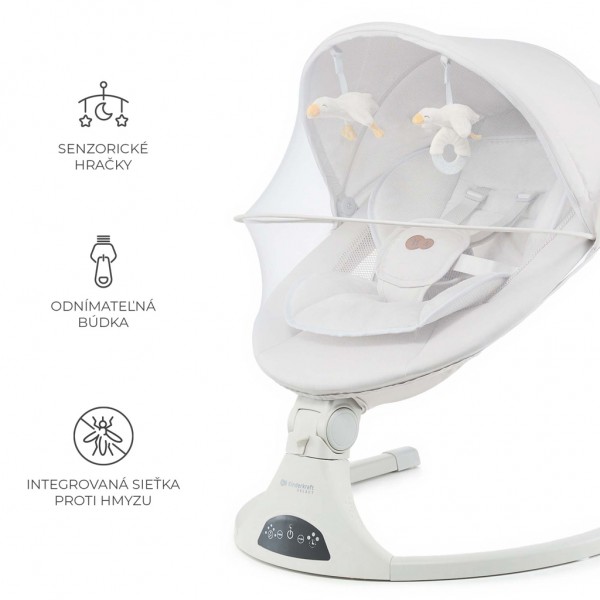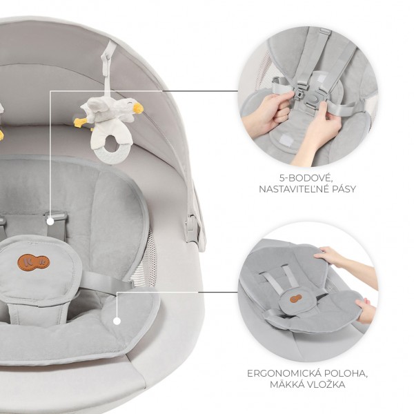 Moderná technológia, ktorá znamená úplné pohodlie pre rodiča aj dieťaElektrické hojdacie lehátko Tulsy predstavuje skutočný prelom a úplne nový rozmer starostlivosti o vaše dieťatko. Ide o najmodernejšie riešenie, ktoré využíva technológiu, aby rodičom poskytlo chvíľu oddychu a zároveň zabezpečilo plný komfort a bezpečnosť pre dieťa.Vďaka intuitívnemu dotykovému panelu a diaľkovému ovládaniu môžu rodičia ovládať hojdanie bez prerušenia svojich aktivít a prispôsobiť ho aktuálnym potrebám dieťatka. Ľahká konštrukcia hojdacieho kresla umožňuje ľahké prenášanie, zatiaľ čo ergonomická sedacia časť s extra mäkkou vyberateľnou vložkou a 3-polohovým nastavením sedačky zaručuje nielen správnu polohu pre vaše dieťa, ale aj jeho pohodlie. Bezpečnosť zaisťujú 5-bodové nastaviteľné bezpečnostné pásy. Ďalšie príslušenstvo, ako je odnímateľná strieška s integrovanou sieťkou proti hmyzu a odnímateľné hračky, robia z Tulsy praktického a všestranného spoločníka pre každodenné chvíle.Tulsy je viac než hojdacie kreslo – je inteligentnou podporou pre rodičov a zárukou pohodlia pre dieťa. Zamilujú si ho všetci milovníci inovácií a moderných riešení! Vstúpte do novej dimenzie starostlivosti s Tulsy.Najdôležitejšie funkcie:- Elektrické ležadlo-hojdacie kreslo – automatické hojdanie v piatich rýchlostiach pre pokojný oddych vášho dieťaťa, časovač hojdania možno nastaviť na 8, 15 alebo 30 minút.- Dotykové ovládanie a diaľkový ovládač – možnosť meniť nastavenia hojdania na paneli a bez toho, aby ste museli ísť k hojdaciemu kreslu.- 3-stupňové nastavenie sedačky – prispôsobenie polohy komfortu dieťaťa.- Ultraľahké a mobilné – váži len 3,93 kg, takže ho môžete ľahko preniesť do inej miestnosti alebo vziať so sebou na dovolenku či k starým rodičom.- Bezpečnosť na najvyššej úrovni – 5-bodové nastaviteľné bezpečnostné pásy a ergonomická sedačka s mäkkou vložkou poskytujú stabilitu a pohodlie Vášmu dieťatku.- Multimediálne funkcie – bluetooth a USB umožňujú zapnúť obľúbenú hudbu vášho dieťaťa z telefónu alebo USB kľúča. TULSY má tiež 12 prednastavených melódií vrátane zvukov prírody.- Praktické príslušenstvo – odnímateľné hračky sa postarajú o zábavu dieťatka, zatiaľ čo odnímateľná búdka a integrovaná sieťka proti hmyzu mu zabezpečia pohodlie.Technické údaje:- Celkový rozmer: 68 cm x 60 cm- Rozmery po zložení: 49,5 cm × 45 cm × 15,7 cm- Výška v polohe 1: 68 cm- Výška v polohe 2: 58 cm- Výška v polohe 3: 48 cm- Vzdialenosť od zeme po hornú časť operadla v polohe 1: 34 cm- Vzdialenosť od zeme po hornú časť operadla v polohe 2: 30 cm- Vzdialenosť od zeme po hornú časť operadla v polohe: 26 cm- Rozmery operadla: 46 cm × 24 cm- Rozmery sedačky: 28 cm × 21 cm- Rozmery striešky: 60 cm × 40 cm- Materiál rámu: oceľ, materiál čalúnenia: 100% polyester, výplň: 100% polyester- Mäkká plyšová vložka (100% polyester)- Farby: šedá, béžová- Bezpečnostné pásy: 5-bodové- Funkcia elektrického hojdania: áno- Skladanie na plocho: áno- Funkcia vibrovania: nie- Hudba: 12 melódií (3 zvuky prírody)- Protišmykový kryt na pásy: áno- Bluetooth, port USB, USB kábel: áno- Nastavenie sedačky: 3 polohy- Hrazdička s hračkami: áno- Nastavenie rýchlosti hojdania: 5 úrovní- Nastavenie času hojdania: 3 úrovne (8/15/30 min)- Sieťka proti hmyzu: áno- Strieška: áno- Počet a druh hračiek: 2 kusy, odnímateľné- Diaľkový ovládač: áno- Hmotnosť: 3,93 kgAdresa dodávateľa: Supl4kraft sp. z o.o., ul. Tatrzanska 1/5, 60-413 Poznan, Poland, support@kinderkraft.com, www.kinderkraft.com.