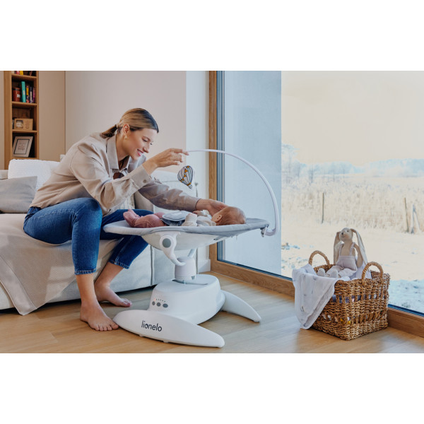 Lionelo Iris Grey Concrete je hojdačka, ktorá vám pomôže účinne upokojiť vaše bábätko. Výrobok je určený pre deti od narodenia, kým nedosiahnu hmotnosť 9 kg alebo kým sa nenaučia sedieť. Inovatívne otočné sedadlo 360° umožňuje nielen meniť smer hojdania, ale tiež udržiavať neustály očný kontakt s vašim bábätkom. 3stupňové nastavenie sklonu operadla umožňuje prispôsobiť nastavenie preferenciám dieťaťa. Vďaka 3 jedinečným hojdacím pohybom v kombinácii s 5-stupňovou reguláciou rýchlosti výrobok dokonale napodobňuje prirodzený rytmus hojdania rodičmi. O pokoj pri odpočinku v hojdacom kresle sa postará tichý chod motora a až 12 prednahraných melódií.Čím sa odlišuje:- 360° otočné sedadlo- 3 stupňové nastavenie sklonu operadla- 3 jedinečné viacdráhové hojdacie pohyby- 5 stupňové nastavenie rýchlostiMade by parents – čo budú mať radi rodičia?- Otočné sedadlo umožňuje vám udržať očný kontakt s dieťaťom.- Jedinečné viacdráhové hojdacie pohyby dokonale napodobňujú spôsob, akým sa rodičia pohybujú pri nosení dieťaťa.- Odnímateľný poťah je možné čistiť v práčke, takže ho môžete ľahko udržiavať v čistote.- Tichá prevádzka zariadenia umožňuje chvíľu relaxácieHojdanie prispôsobené potrebám dieťaťa: 3 stupňové nastavenie sklonu operadla umožňuje dieťaťu zaujať polohu v ľahu, poloľahu av polosede v závislosti na pohodlí alebo schopnostiach batoľaťa. Až 3 jedinečné hojdacie pohyby nielen zaisťujú, že sa dieťa nenudí, ale tiež dokonale odrážajú prirodzený rytmus hojdania rodiča. Navyše je k dispozícii 5-stupňová regulácia rýchlosti hojdania, ktorá umožňuje nastaviť tempo podľa preferencií vášho dieťaťa.Stály kontakt s dieťaťom: Inovatívne 360° otočné sedadlo umožňuje nielen meniť smer hojdania, ale aj polohovať hojdačka tak, aby ste mohli s dieťaťom vždy udržiavať očný kontakt.Pohodlie a bezpečnosť: Široké a tvarované sedadlo je nielen pohodlné, ale tiež umožňuje, aby dieťa bolo umiestnené v čo najzdravšej polohe. Bezpečnosť batoľaťa zaisťujú 5bodové pásy s chráničmi.Intuitívne ovládanie: Detské hojdacie kreslo Iris je tichým pomocníkom pre každého rodiča - a to aj v pravom slova zmysle - vďaka takmer bezhlučnému chodu motora je hojdacie kreslo nepočuteľné. Ovládací panel je umiestnený v strednej časti základne, takže ovládanie zariadenia je veľmi intuitívne.Zábava: V zariadení je predinštalovaných až 12 pokojných melódií s nastaviteľnou hlasitosťou, ktoré účinne upokojujú bábätko. Nastaviteľný oblúk s hračkami medzitým udržuje pozornosť dieťaťa a povzbudzuje ho k naťahovaniu rúk. V prípade potreby ho možno tiež demontovať.S ohľadom na rodičov: Vďaka nízkej hmotnosti hojdacieho kresla môže rodič zariadenie ľahko premiestniť podľa aktuálnej potreby. Protišmykové podložky umiestnené na základni navyše chránia podlahu pred poškriabaním. Odnímateľný poťah umožňuje udržiavať hojdacie kreslo v čistote.Technické parametre:- Hmotnostný rozsah: do 9 kg (alebo keď dieťa začne sedieť)- Bezpečnostné pásy: 5bodové- 3-stupňové nastavenie opierky chrbta- Sedadlo otočné o 360 °- 4-stupňové nastavenieBalenie obsahuje:- Lehátko vrátane stojana- Hračku- USB kábel