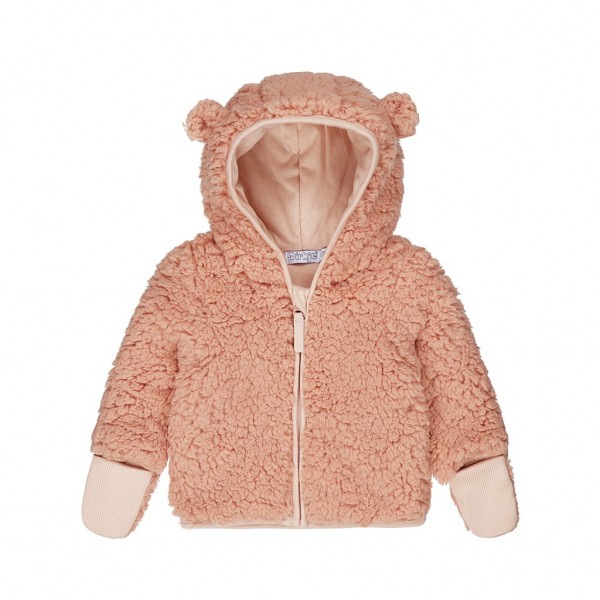 DIRKJE Mikina na zips s kapucňou prechodná Sherpa ružová dievča veľ.68