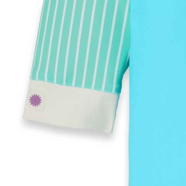 ICONIK plavkový overal s UV ochranou je nevyhnutnou výbavou na leto pre najmenších. Kombinuje štýl, pohodlie a ochranu pred slnkom krehkej detskej pokožky na suchu aj vo vode. Je ideálny na pláž, k bazénu alebo počas outdoorových aktivít. Vďaka ochrannému faktoru UPF 50+ poskytuje ochranu pred UV žiarením. Praktický zips po celej dĺžke uľahčuje obliekanie a vyzliekanie aj pre tie najnepokojnejšie deti. Najvyšší index ochrany UPF 50+ (blokuje až 98 % UVA a UVB lúčov). Recyklovaný polyester s certifikátom GRS (Global Recycled Standard) a spandex. Certifikát Oeko-Tex. Ľahko odstrihnuteľný štítok. Recyklovateľné balenie. UV senzor. UV senzor Aby sme aj deti zapojili do ich ochrany pred slnkom, na plavkový overal sme umiestnili UV senzor, ktorý mení farbu v závislosti od intenzity UV žiarenia (čím je viac fialový, tým je UV žiarenie intenzívnejšie a je potrebná vyššia ochrana pred slnkom). Zloženie Overal je vyrobený z 82% recyklovaného polyesteru a 18% spandexu, čím zaisťujú flexibilitu a pohodlie, zatiaľ čo podšívka (92 % polyester, 8 % spandex) zaručuje mäkký a príjemný pocit na pokožke. Balenie Pre celú radu plaviek a ponč ICONIK je obal inšpirovaný originálnym balením slnečných okuliarov KiETLA. Okrúhly otvor na papierovom balení vám umožňuje vyskúšať materiál a vidieť jeho farbu. Plavkový overal je dostupný v 4 veľkostiach: 6-12 mesiacov. 12-18 mesiacov. 18-24 mesiacov. 2-4 roky. Veľkostnú tabuľku nájdete tu . Údržba: Odolné voči slanej vode aj chlóru. Pranie pri teplote 30°C. Nesušte v sušičke, nežehlite, nepoužívajte zmäkčovadlo.