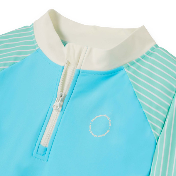ICONIK plavecké tričko s dlhým rukávom s UV ochranou je nevyhnutnou výbavou na leto pre najmenších. Kombinuje štýl, pohodlie a ochranu pred slnkom krehkej detskej pokožky na suchu aj vo vode. Je ideálne na pláž, k bazénu alebo počas outdoorových aktivít. Vďaka ochrannému faktoru UPF 50+ poskytuje ochranu pred UV žiarením. Najvyšší index ochrany UPF 50+ (blokuje až 98 % UVA a UVB lúčov). Recyklovaný polyester s certifikátom GRS (Global Recycled Standard) a spandex. Certifikát Oeko-Tex. Ľahko odstrihnuteľný štítok. Recyklovateľné balenie. UV senzor. UV senzor Aby sme aj deti zapojili do ich ochrany pred slnkom, na tričko sme umiestnili UV senzor, ktorý mení farbu v závislosti od intenzity UV žiarenia (čím je viac fialový, tým je UV žiarenie intenzívnejšie a je potrebná vyššia ochrana pred slnkom). Zloženie Overal je vyrobený z 82% recyklovaného polyesteru a 18% spandexu, čím zaisťujú flexibilitu a pohodlie, zatiaľ čo podšívka (92 % polyester, 8 % spandex) zaručuje mäkký a príjemný pocit na pokožke. Balenie Pre celú radu plaviek a ponč ICONIK je obal inšpirovaný originálnym balením slnečných okuliarov KiETLA. Okrúhly otvor na papierovom balení vám umožňuje vyskúšať materiál a vidieť jeho farbu. Plavky s dlhým rukávom sú dostupné v 3 veľkostiach: 2-4 roky. 4-6 rokov. 6-8 rokov. Veľkostnú tabuľku nájdete tu . Údržba: Odolné voči slanej vode aj chlóru. Pranie pri teplote 30°C. Nesušte v sušičke, nežehlite, nepoužívajte zmäkčovadlo.