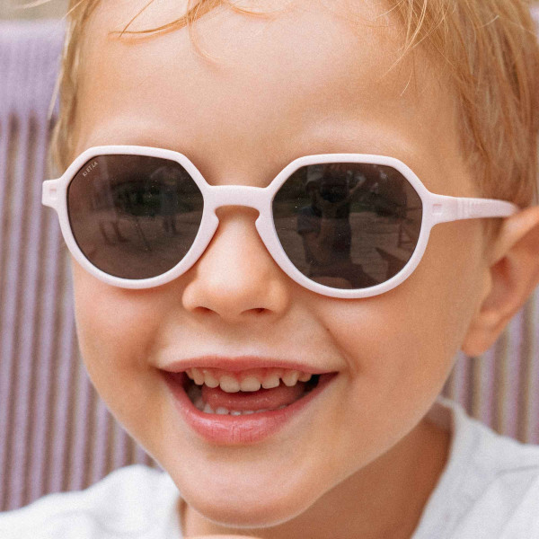 Prémiové slnečné okuliare vyvinuté francúzskymi odborníkmi špeciálne pre malé deti. Sú jedinečné vďaka nerozbitnému, flexibilnému, extra ľahučkému rámu, ktorý netlačí za uškami ani na nose. Poskytujú tú najvyššiu ochranu UV filtrov spolu s filtrom modrého svetla v kvalitných polykarbonátových sklách. Dokonalá ochrana a dokonalý dizajn aj pre tie najmenšie deti. Extra ochrana 100% UVA, UVB a UVC filter (UV400), kategória 3. Odolné polykarbonátové sklá s najkvalitnejším filtrom. Blue Blocker – filter škodlivého modrého svetla, zníženie oslnenia a zabezpečenie vizuálneho komfortu. Dostatočná veľkosť skiel, aby zatienili celé okolie očí. Certifikované podľa európskych noriem EN ISO 12312-1:2013/A1:2015. Extra bezpečnosť Nerozbitný ohybný rám – deti bočnice nezlomia ani nevykrútia. Bez nebezpečných pántov a skrutiek. Extra pohodlie Ultra ľahký a flexibilný rám. Bočnice tenké a tvarované, aby netlačili za uškami. Odnímateľná gumička udrží okuliare správne nasadené. Rešpekt k prírode Plne recyklovateľné. Nerozbitné = dlhá životnosť. Praktický obal z recyklovaného papiera. Doplnky v balení: Odnímateľná prispôsobiteľná gumička (u veľkostí do 4 rokov). Vrecúško na okuliare vhodné aj na čistenie okuliarov. Detské oči sú veľmi zraniteľné a citlivé na slnko. Šošovka ešte nie je dostatočne vyvinutá, aby chránila sietnicu ako u dospelých. Šošovka sa vyvíja až do veku 12 rokov dieťaťa. Dovtedy veľká časť UV žiarenia prechádza až k sietnici a spôsobuje poškodenia, ktoré sa vekom kumulujú a môžu sa prejaviť až v dospelosti. Preto je veľmi dôležité chrániť oči detí už od malička. Možnosť vloženia dioptrických skiel, informujte sa u Vášho optika. Veľkostnú tabuľku KiETLA nájdete tu .