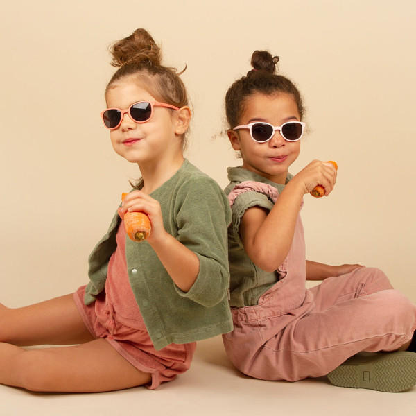 Prémiové slnečné okuliare vyvinuté francúzskymi odborníkmi špeciálne pre malé deti. Sú jedinečné vďaka nerozbitnému, flexibilnému, extra ľahučkému rámu, ktorý netlačí za uškami ani na nose. Poskytujú tú najvyššiu ochranu UV filtrov spolu s filtrom modrého svetla v kvalitných polykarbonátových sklách. Dokonalá ochrana a dokonalý dizajn aj pre tie najmenšie deti.  Extra ochrana 100% UVA, UVB a UVC filter, kategória 3 odolné polykarbonátové sklá (kvalitnejší filter ako akrylové sklá) novinka – Blue Blocker – filter škodlivého modrého svetla dostatočná veľkosť skiel, aby zatienila celé okolie očí certifikované podľa európskych noriem EN ISO 12312-1:2013/A1:2015   Extra bezpečnosť nerozbitný ohybný rám – deti bočnice nezlomia ani nevykrútia bez nebezpečných pántov a skrutiek, ktoré znamenajú nebezpečenstvo pri úrazoch   Extra pohodlie ultra ľahký a flexibilný rám bočnice tenké a tvarované, aby netlačili za uškami odnímateľná gumička udrží okuliare správne nasadené   Rešpekt k prírode plne recyklovateľné nerozbitné = dlhá životnosť praktický obal „CARRY-ME“ z recyklovaného papiera   Doplnky v balení: prispôsobiteľný popruh vrecúško na okuliare vhodné aj na čistenie okuliarov  Možnosť vloženia dioptrických skiel, informujte sa u Vášho optika.  Veľkosť 1-2 roky: Šírka okuliarov: 96 mm Výška okuliarov: 35 mm Dĺžka stránic: 125 mm Veľkosť 2-4 roky: Šírka okuliarov: 102 mm Výška okuliarov: 38 mm Dĺžka stránic: 125 mm Veľkostnú tabuľku KiETLA nájdete tu .  Detské oči sú na slnko veľmi citlivé a zraniteľné. Šošovka ešte nie je dostatočne vyvinutá, aby chránila sietnicu ako u dospelých. Šošovka sa vyvíja až do veku 12 rokov dieťaťa. Dovtedy veľká časť UV žiarenia prechádza až k sietnici a spôsobuje poškodenia, ktoré sa vekom kumulujú a môžu sa prejaviť až v dospelosti. Preto je veľmi dôležité chrániť oči detí už od malička.