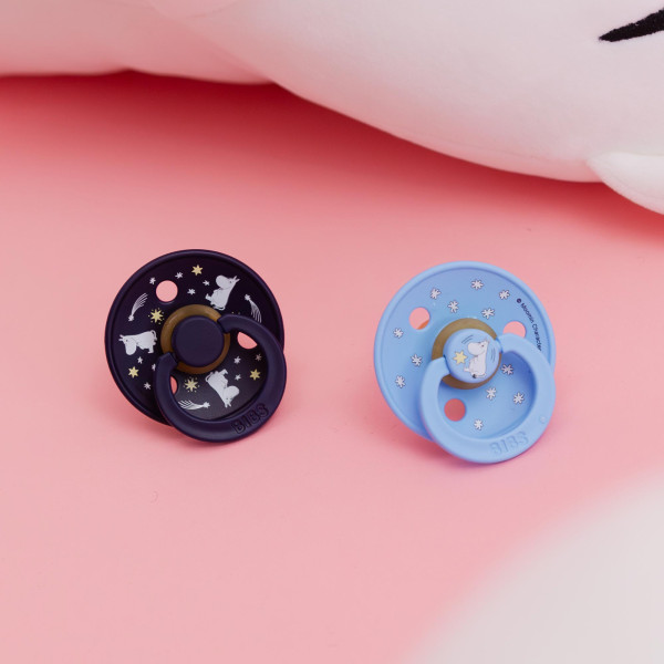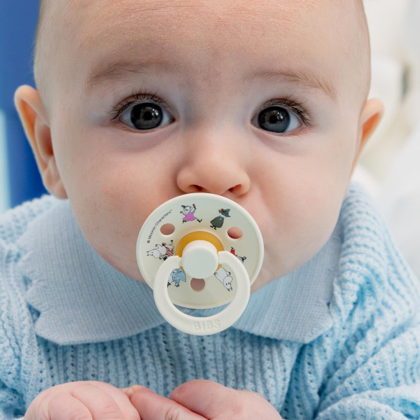 Ikonický cumlík BIBS Colour dostáva vďaka spolupráci BIBS X MOOMIN nový hravý vzhľad. Cumlíky s obľúbenými postavičkami zo sveta Moominov sú navrhnuté tak, aby vyčarili úsmev na tvári, upokojili najmenších a dodali nádych čarovnej mágie do náročných dní rodičovstva.BIBS dobývajú celý svet. Jednoduché a štýlové. Sacia časť je vyrobená zo 100% prírodného kaučuku, ktorý je mimoriadne pružný a mäkký zároveň, odolný voči vytvoreniu trhlín a odštiepeniu malých kúskov. Cumlík je navrhnutý tak, aby nedráždil citlivú pokožku bábätka. Okrúhly krúžok s vetracími otvormi má klenutý tvar, takmer vôbec sa nedotýka pokožky okolo úst, tá preto zostáva kľudná, bez otlačkov a podráždení. Vďaka mäkučkému kaučuku a zabudovanému vzduchovému ventilu dieťa cumlík ľahko stláča a formuje v ústach, čím je zachovaný prirodzený vývin podnebia, ďasien a zúbkov detí.Prečo deti aj rodičia obľubujú cumlíky BIBS Colour? Extra ľahučký. Vďaka špeciálnemu klenutému tvaru krúžku je minimalizovaný dotyk cumlíka s pokožkou a nevznikajú otlačky a podráždenia. Guľatý / čerešničkový tvar sacej časti si často obľúbia aj deti, ktoré odmietajú iné tvary cumlíka. Dieťa saje len 100% prírodný bezpečný materiál – kaučuk vyrobený z miazgy stromu Hevea. Výnimočná chuť prírodného kaučuku, deti ho prirodzene uprednostňujú pred syntetickými materiálmi. Štýlový dizajn v mnohých farebných prevedeniach. Vyrobené v EU.  Zloženie:Sacia časť: 100% prírodný kaučukOstatné časti: polypropylén (PP) potravinárskej kvality. Bez BPA, PVC, ftalátov a iných škodlivých látok.Vyrobené v Dánsku. V súlade s európskym štandardom EN 1400+A2.