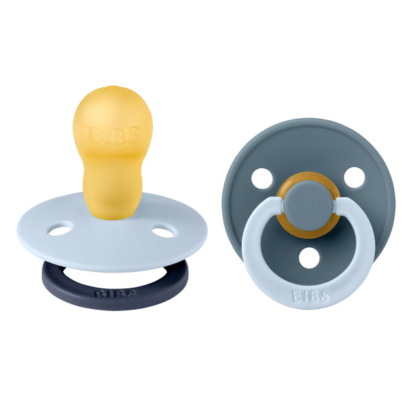 BIBS STUDIO Colour Fusion cumlíky z prírodného kaučuku 2ks – veľkosť 1,2 Renomovaná francúzska dizajnérka Glitter Power Club vytvorila pre BIBS exkluzívnu sadu potlačí a BIBS tak opäť prináša nový a svieži vietor do sveta detských produktov. Kolekcia BIBS Studio je inšpirovaná aktuálnymi trendami v dizajne, experimentuje s potlačou inovatívnym spôsobom a BIBS tak naďalej určuje trendy v rodičovstve. BIBS dobývajú celý svet. Jednoduché a štýlové. Sacia časť je vyrobená zo 100% prírodného kaučuku, ktorý je mimoriadne pružný a mäkký zároveň, odolný voči vytvoreniu trhlín a odštiepeniu malých kúskov. Cumlík je navrhnutý tak, aby nedráždil citlivú pokožku bábätka. Okrúhly krúžok s vetracími otvormi má klenutý tvar, takmer vôbec sa nedotýka pokožky okolo úst, tá preto zostáva kľudná, bez otlačkov a podráždení. Vďaka mäkučkému kaučuku a zabudovanému vzduchovému ventilu dieťa cumlík ľahko stláča a formuje v ústach, čím je zachovaný prirodzený vývin podnebia, ďasien a zúbkov detí. Prečo deti aj rodičia obľubujú cumlíky BIBS Colour? Extra ľahučký. Vďaka špeciálnemu klenutému tvaru krúžku je minimalizovaný dotyk cumlíka s pokožkou a nevznikajú otlačky a podráždenia. Guľatý / čerešničkový tvar sacej časti si často obľúbia aj deti, ktoré odmietajú iné tvary cumlíka. Dieťa saje len 100% prírodný bezpečný materiál – kaučuk vyrobený z miazgy stromu Hevea. Výnimočná chuť prírodného kaučuku, deti ho prirodzene uprednostňujú pred syntetickými materiálmi. Štýlový dizajn v mnohých farebných prevedeniach. Vyrobené v EU.   Zloženie : Sacia časť: 100% prírodný kaučuk Ostatné časti: polypropylén (PP) potravinárskej kvality. Bez BPA, PVC, ftalátov a iných škodlivých látok. Vyrobené v Dánsku. V súlade s európskym štandardom EN 1400+A2. Veľkosti: BIBS Studio Colour cumlíky sú k dispozícii v 2 veľkostiach: Veľkosť 1: 0 – 6 mesiacov. Veľkosť 2: 6 – 18 mesiacov. Veľkosť 3: od 18 mesiacov Vekové odporúčanie veľkostí je len orientačné, každé dieťa môže mať iné potreby a preferencie.
