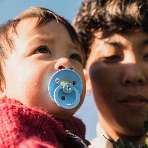 Kolekcia BIBS STUDIO prináša svieži vietor do sveta detských produktov. Experimentuje s dizajnovou potlačou obľúbených cumlíkov a vytvára priestor na vyjadrenie Vášho jedinečného štýlu. Sacia časť BIBS STUDIO Colour cumlíkov je vyrobená zo 100% prírodného kaučuku, ktorý je mimoriadne pružný a mäkký zároveň, odolný voči vytvoreniu trhlín a odštiepeniu malých kúskov. Cumlík je navrhnutý tak, aby nedráždil citlivú pokožku bábätka. Okrúhly krúžok s vetracími otvormi má klenutý tvar, takmer vôbec sa nedotýka pokožky okolo úst, tá preto zostáva kľudná, bez otlačkov a podráždení. Vďaka mäkučkému kaučuku a zabudovanému vzduchovému ventilu dieťa cumlík ľahko stláča a formuje v ústach, čím je zachovaný prirodzený vývin podnebia, ďasien a zúbkov detí. Prečo deti aj rodičia obľubujú cumlíky BIBS Colour? Extra ľahučký. Vďaka špeciálnemu klenutému tvaru krúžku je minimalizovaný dotyk cumlíka s pokožkou a nevznikajú otlačky a podráždenia. Guľatý / čerešničkový tvar sacej časti si často obľúbia aj deti, ktoré odmietajú iné tvary cumlíka. Dieťa saje len 100% prírodný bezpečný materiál – kaučuk vyrobený z miazgy stromu Hevea. Výnimočná chuť prírodného kaučuku, deti ho prirodzene uprednostňujú pred syntetickými materiálmi. Štýlový dizajn v mnohých farebných prevedeniach. Vyrobené v EU. Zloženie : Sacia časť: 100% prírodný kaučuk Ostatné časti: polypropylén (PP) potravinárskej kvality. Bez BPA, PVC, ftalátov a iných škodlivých látok. Vyrobené v Dánsku. V súlade s európskym štandardom EN 1400+A2.