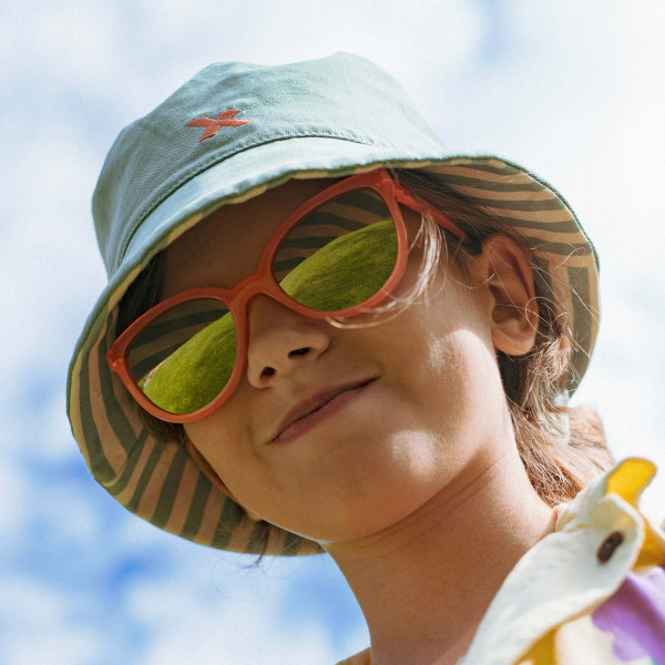 KiETLA obojstranný klobúčik ponúka optimálnu ochranu detí pred slnečným žiarením. Je vyrobený z recyklovanej bavlny s certifikátom GRS (Global Recycled Standard) a polyesteru a vhodný pre deti už od narodenia. Klobúčik je mäkučký, pohodlný a vhodný aj na dlhšie nosenie. Zoberte ho na pláž, na detské ihrisko či na „bajk“ a chráňte deti pred UV žiarením štýlovo. Filter UPF 50+ je bez chemickej úpravy, materiál neobsahuje žiadne látky škodlivé pre malé deti a životné prostredie. Najvyšší index ochrany UPF 50+ (blokuje až 98 % UVA a UVB lúčov). Obojstranný – z jednej strany jemné jednofarebné froté, z druhej bavlna pásiky. Najmenšia veľkosť 44 – 48 cm má aj šnúrku na uviazanie klobúčika pod bradou. Zloženie: pásikavá strana - 100% recyklovaná bavlna s certifikátom GRS, jednofarebná froté strana – 80% bavlna + 20% polyester. Výrobok je v súlade s európskym nariadením 2016/425. Klobúk je k dispozícii v troch veľkostiach a je vhodný pre deti od narodenia do cca 12 rokov: obvod hlavy 44 – 48 cm. obvod hlavy 48 – 52 cm. obvod hlavy 52 – 56 cm. Upozorňujeme, že klobúčik s UV ochranou nenahrádza potrebu vhodnej ochrany pred slnkom pre iné časti tela. Údržba: Pre čo najdlhšiu životnosť odporúčame: prať ručne, nepoužívať agresívne pracie prostriedky, nežmýkať, nesušiť v sušičke, nechať voľne vyschnúť v tieni.