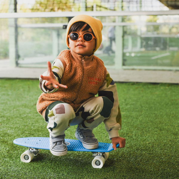 Prémiové slnečné okuliare vyvinuté francúzskymi odborníkmi špeciálne pre malé deti. Sú jedinečné vďaka nerozbitnému, flexibilnému, extra ľahučkému rámu, ktorý netlačí za uškami ani na nose. Poskytujú tú najvyššiu ochranu UV filtrov spolu s filtrom modrého svetla v kvalitných polykarbonátových sklách. Dokonalá ochrana a dokonalý dizajn aj pre tie najmenšie deti. Extra ochrana 100% UVA, UVB a UVC filter, kategória 3 odolné polykarbonátové sklá (kvalitnejší filter ako akrylové sklá) novinka – Blue Blocker – filter škodlivého modrého svetla dostatočná veľkosť skiel, aby zatienila celé okolie očí certifikované podľa európskych noriem EN ISO 12312-1:2013/A1:2015 Extra bezpečnosť nerozbitný ohybný rám – deti bočnice nezlomia ani nevykrútia bez nebezpečných pántov a skrutiek, ktoré znamenajú nebezpečenstvo pri úrazoch Extra pohodlie ultra ľahký a flexibilný rám bočnice tenké a tvarované, aby netlačili za uškami odnímateľná gumička udrží okuliare správne nasadené Rešpekt k prírode plne recyklovateľné nerozbitné = dlhá životnosť praktický obal „CARRY-ME“ z recyklovaného papiera Doplnky v balení: prispôsobiteľný popruh vrecúško na okuliare vhodné aj na čistenie okuliarov Možnosť vloženia dioptrických skiel, informujte sa u Vášho optika. Veľkosť 1-2 roky: Šírka okuliarov: 96 mm Výška okuliarov: 39 mm Dĺžka stránic: 125 mm Veľkosť 2-4 roky: Šírka okuliarov: 102 mm Výška okuliarov: 41 mm Dĺžka stránic: 125 mm Veľkostnú tabuľku KiETLA nájdete tu . Detské oči sú na slnko veľmi citlivé a zraniteľné. Šošovka ešte nie je dostatočne vyvinutá, aby chránila sietnicu ako u dospelých. Šošovka sa vyvíja až do veku 12 rokov dieťaťa. Dovtedy veľká časť UV žiarenia prechádza až k sietnici a spôsobuje poškodenia, ktoré sa vekom kumulujú a môžu sa prejaviť až v dospelosti. Preto je veľmi dôležité chrániť oči detí už od malička.